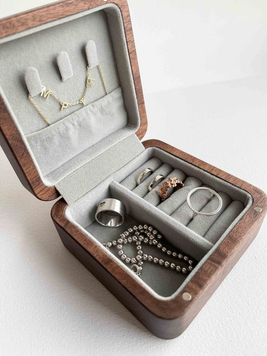 Wooden jewelry organizer (10x10x5 cm; walnut color)