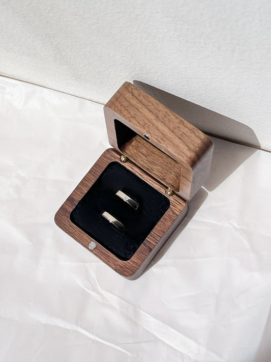 Wooden box for two rings (walnut color)