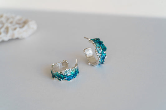 At first, we used only hot jewelry enamel and made earrings, rings and pendants only in silver, because it does not stick to white gold, and it strongly changes the shade on yellow. But later we tried photopolymer enamel, which is suitable for gold, and the jewelry acquired even more special shades.