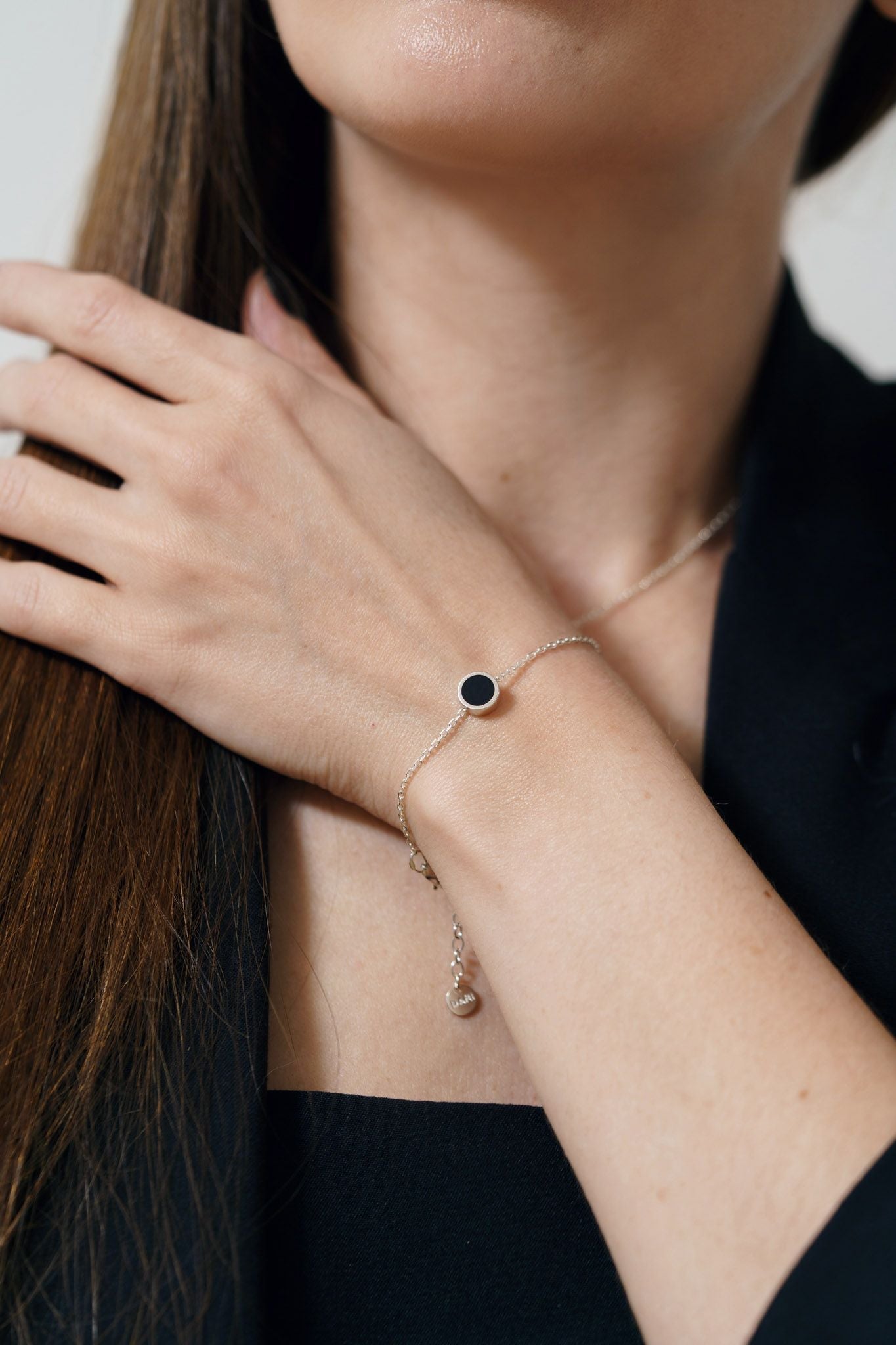 Bracelet "Circle" (8 mm) with enamel — a stylish accessory with a minimalist accent. The design features a circular element adorned with vibrant enamel, symbolizing harmony and completeness. An ideal choice for those who appreciate modern and elegant accessories.