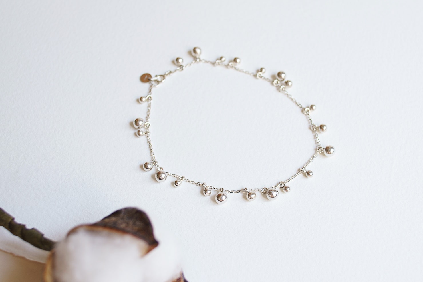 Elevate your style with our "Scattering of balls" anklet. Made with 3,4,5 mm balls, this delicate piece adds a gentle touch to any outfit. The accented design creates a unique and sophisticated look, perfect for any occasion. Upgrade your accessory collection with this must-have bracelet.