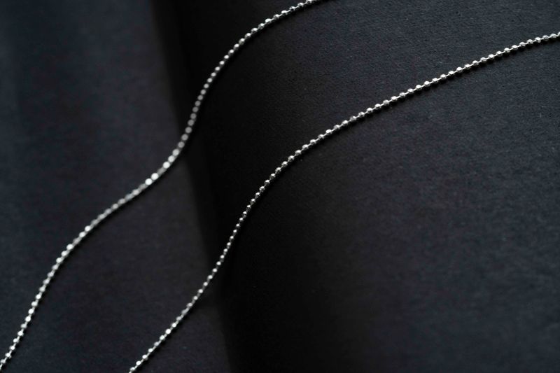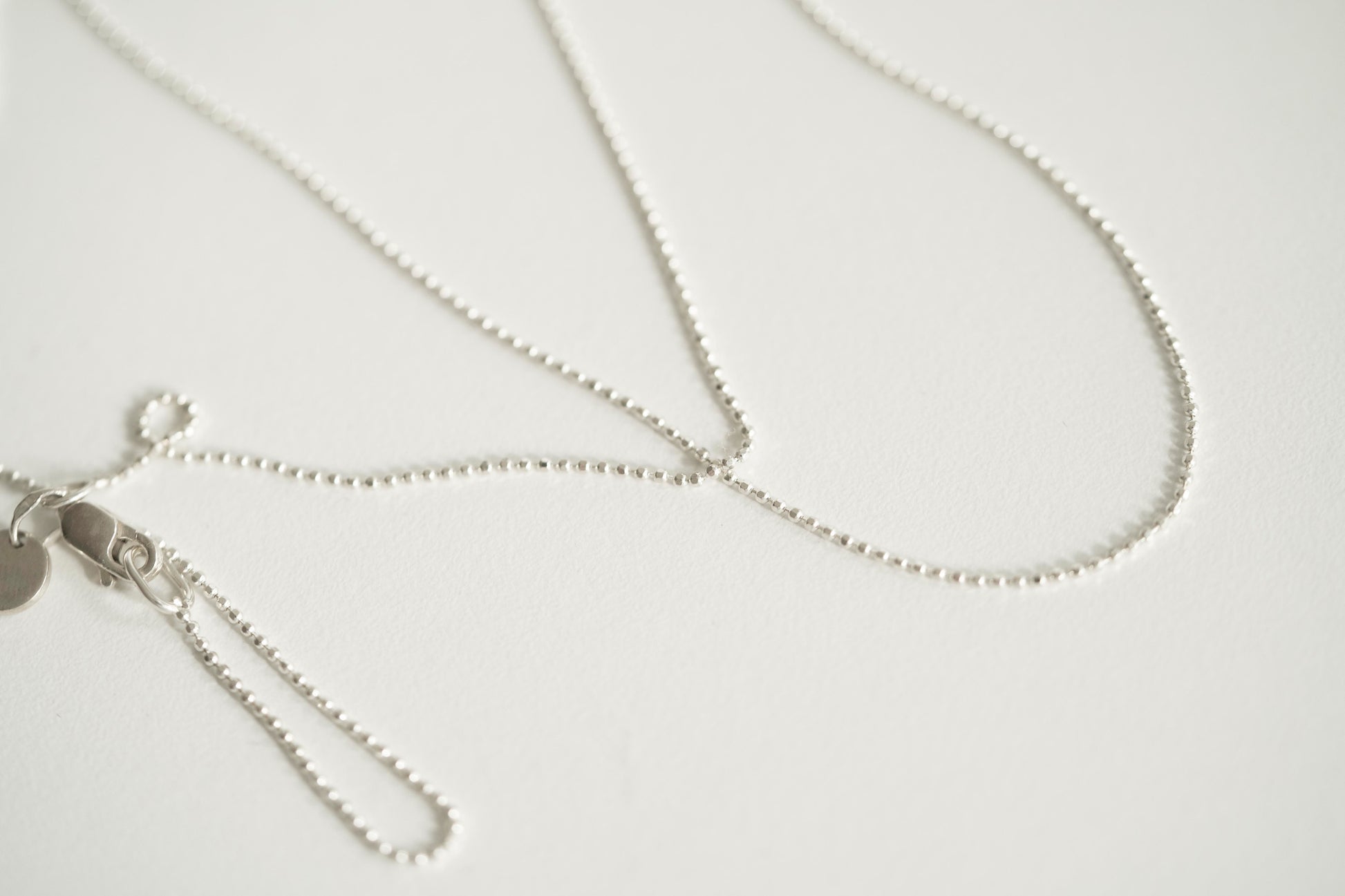 The Balls chain is a stylish accessory with links in the shape of beads. The minimalist design makes it a versatile choice for wearing both on its own and with pendants. It is ideal for creating a modern and refined look.