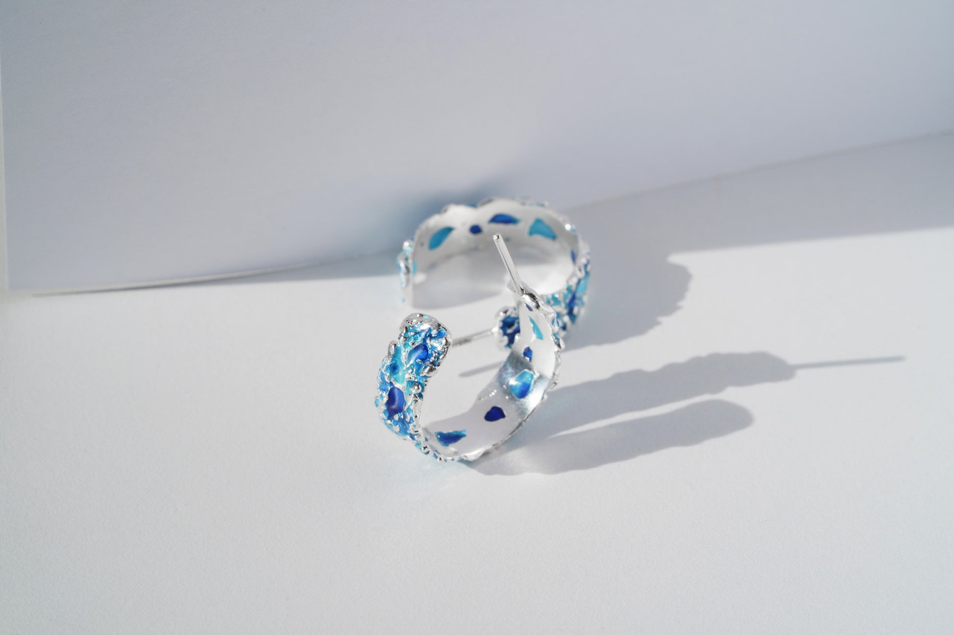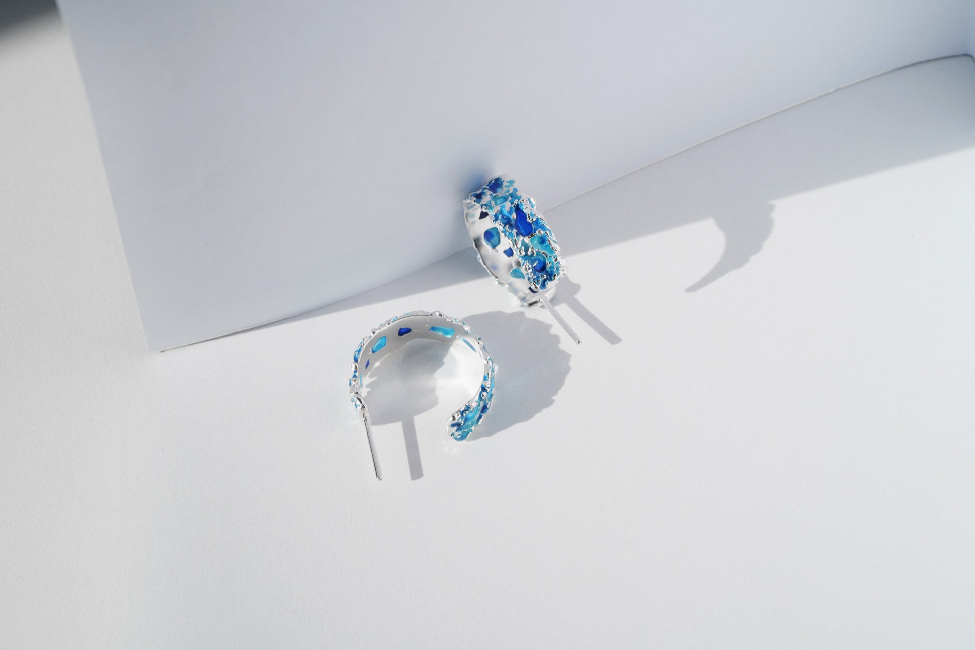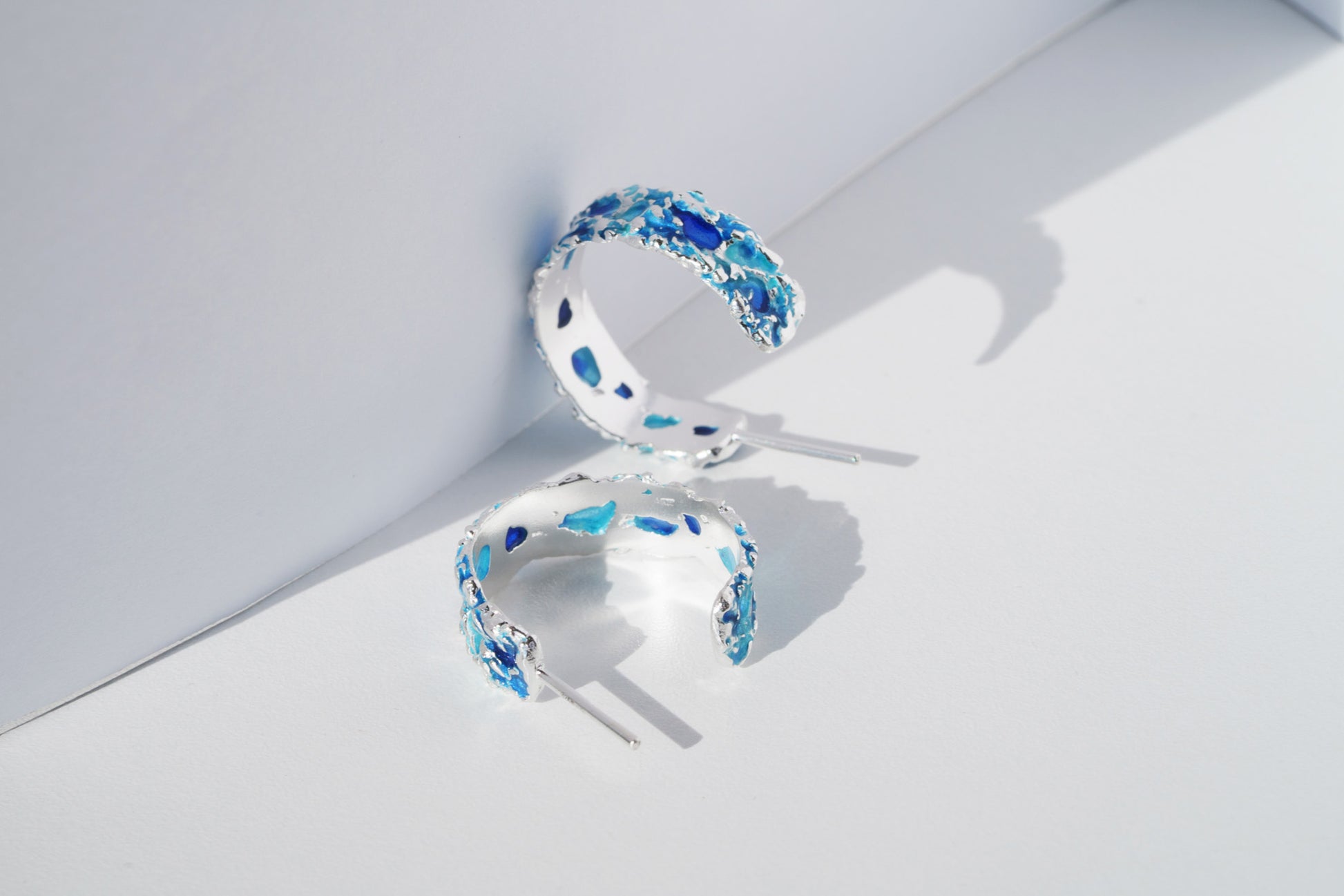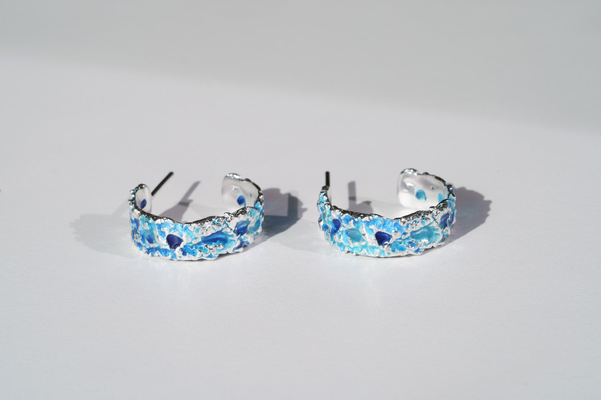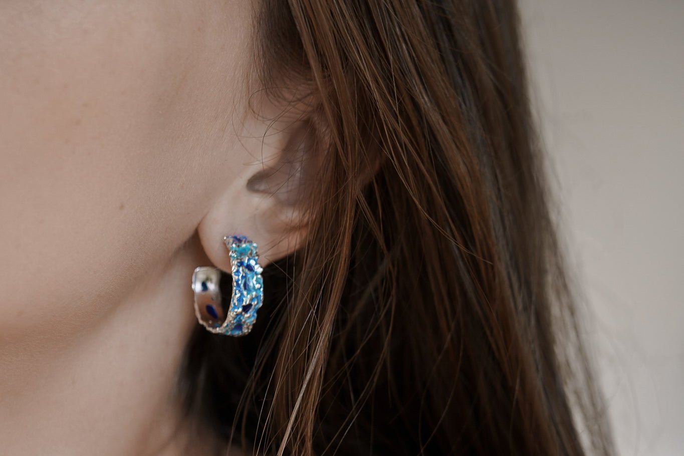 Earrings "Storm" blue— refined jewelry that embodies the power and dynamics of nature in a compact form. Their sleek lines capture the energy of the waves, adding a stylish accent to your look.