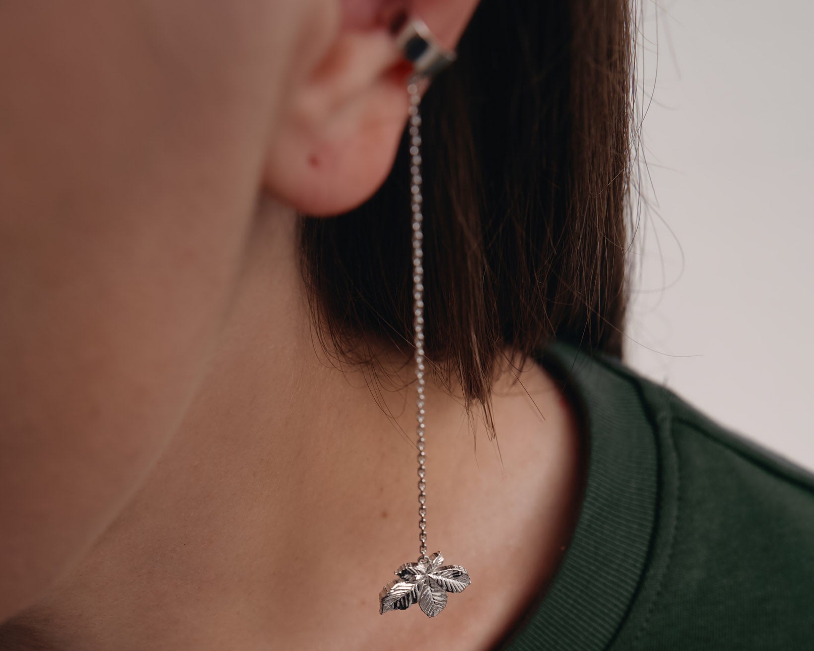 The “Chestnut Leaf” cuff (15 mm) light is a symbol of Kyiv, brought to life in silver or gold. Its textured surface, etched with fine veins, captures the natural beauty of a real chestnut leaf — the iconic emblem of a city where every street breathes history.