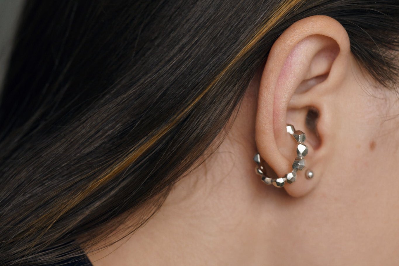 Experience the beauty and sophistication of our "Faceted balls" cuff. Its stunning, stylish design will elevate any outfit, making you stand out in any occasion. With its intricate details and high-quality materials, this cuff is a must-have for every fashion-forward individual. Don't settle for less, treat yourself to our gorgeous cuff today.