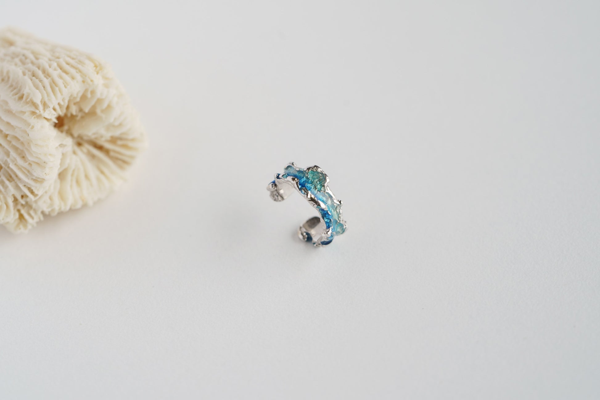 Introducing the "Wave" blue cuff. With its unique wave design, stunning blue and emerald colors, this cuff is both stylish and eye-catching. Crafted with expert precision, it is a perfect accessory to elevate any outfit. Add a touch of elegance to your wardrobe with the "Wave" cuff.