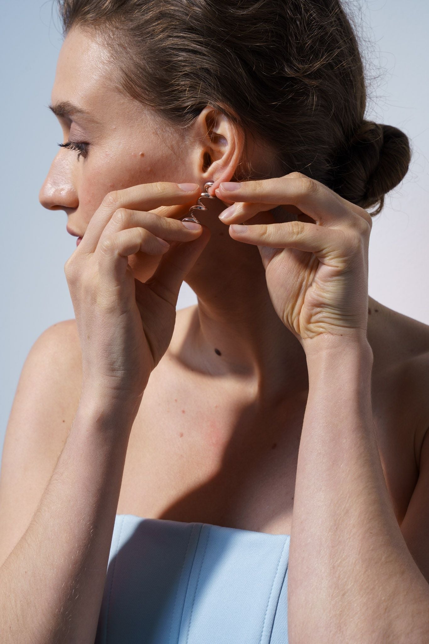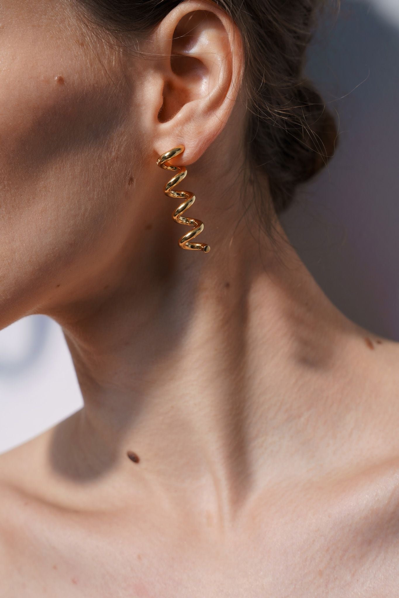 When selecting gold earrings, it's important to consider the shape and thickness of your earlobe, as well as the distance from the piercing to the edge of the lobe.