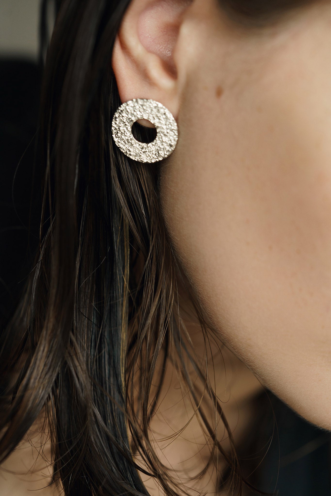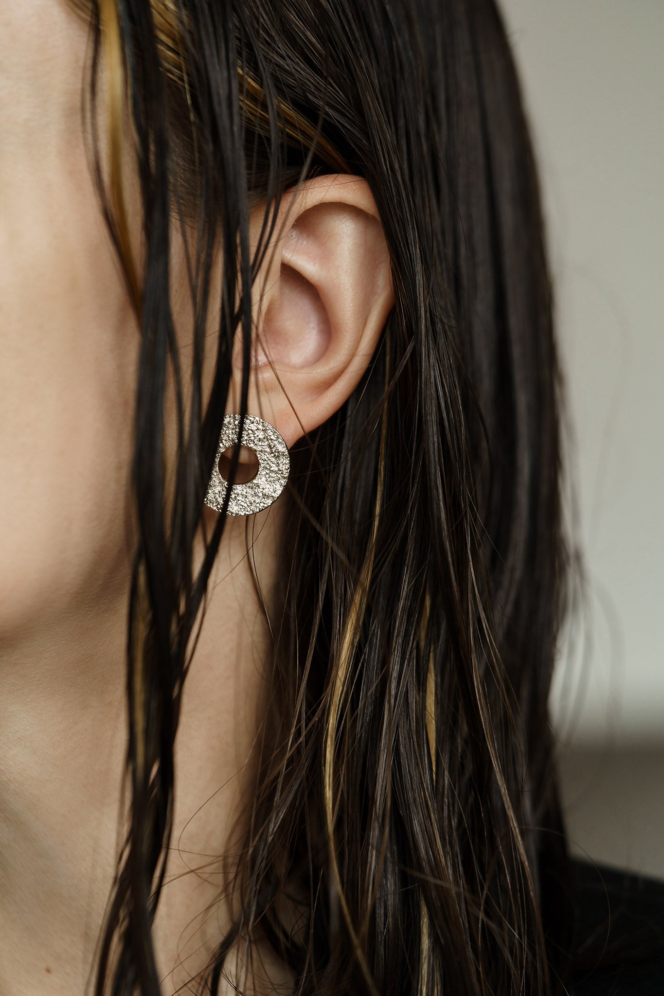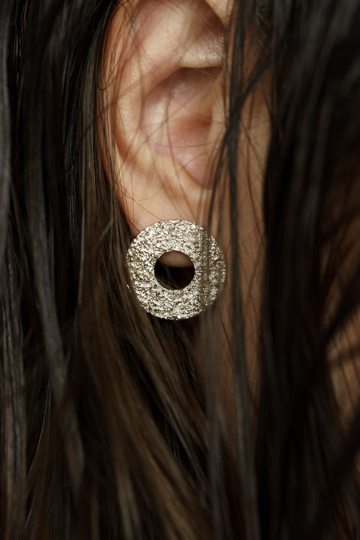 These "Sand circle" earrings (20 mm) exude luxury and spectacle. The intricate design adds a touch of elegance to any outfit. Made with high quality materials, these earrings will surely make an impression. Elevate your style with these stunning statement pieces.