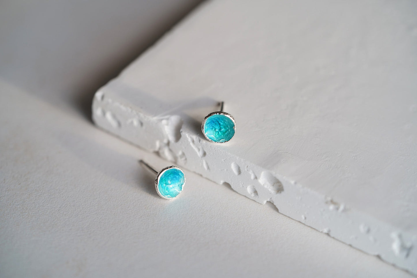 Expertly crafted "Sea" earrings, made of vibrant enamel and high-quality silver or gold. Add a touch of elegance and style to any outfit with these 7,5 mm wide earrings. Perfect for any occasion, these earrings are a must-have for any jewelry collection.