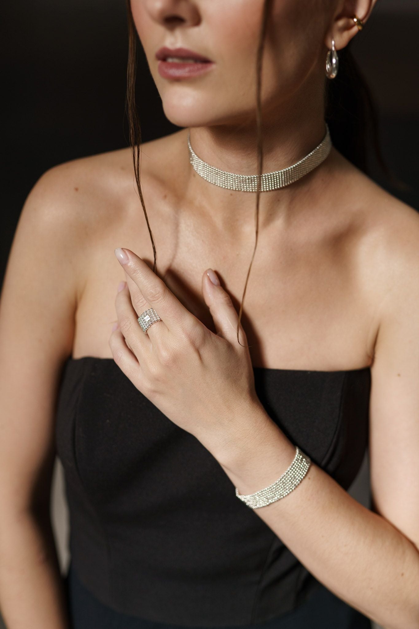 The "Stripe" necklace is a stylish piece of jewelry made in a traditional style with elements that form a uniform pattern. Thanks to its simple but expressive design, it adds elegance to the look and is suitable for both festive events and everyday wear. The "Stripe" necklace will be a great accent, complementing any outfit.