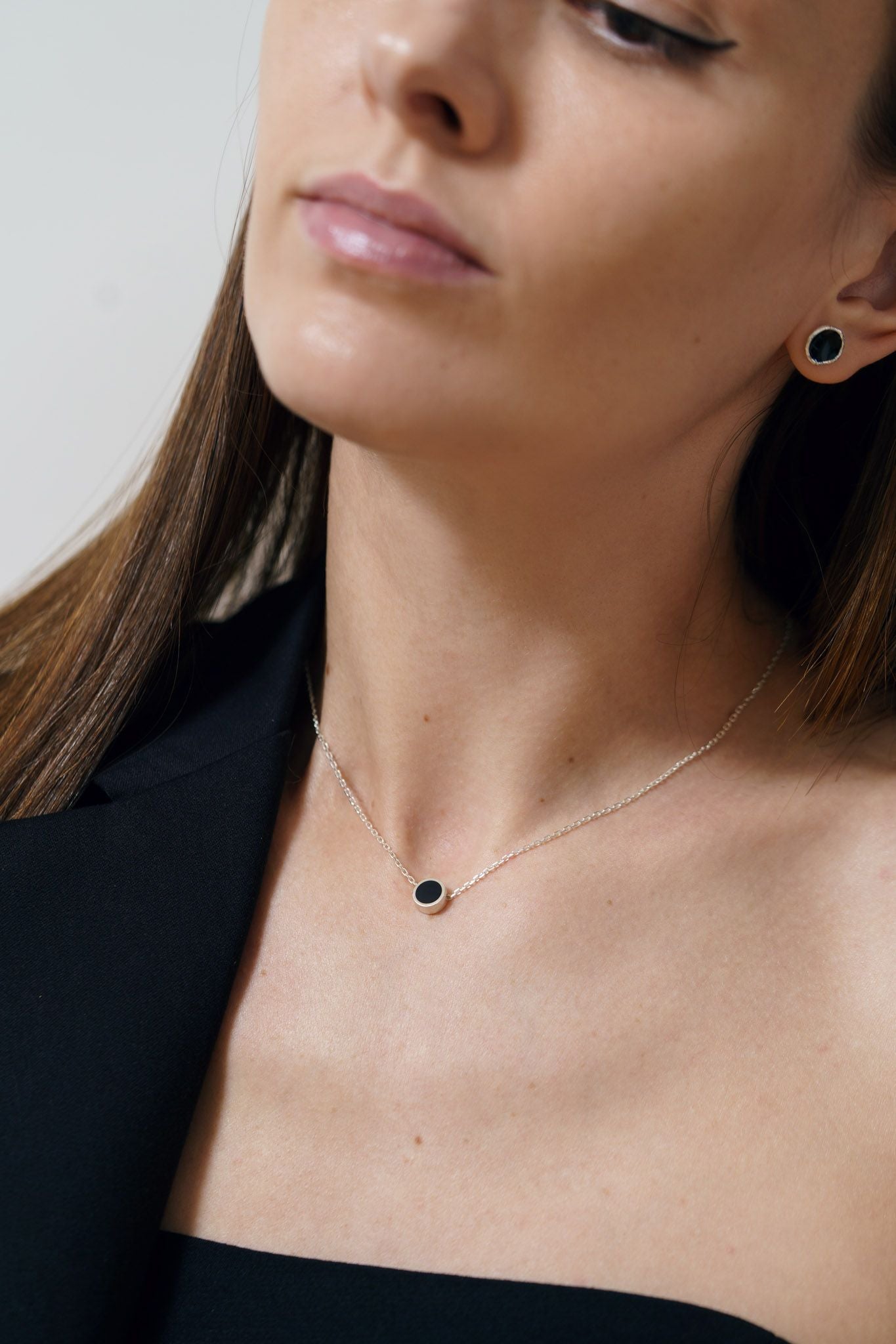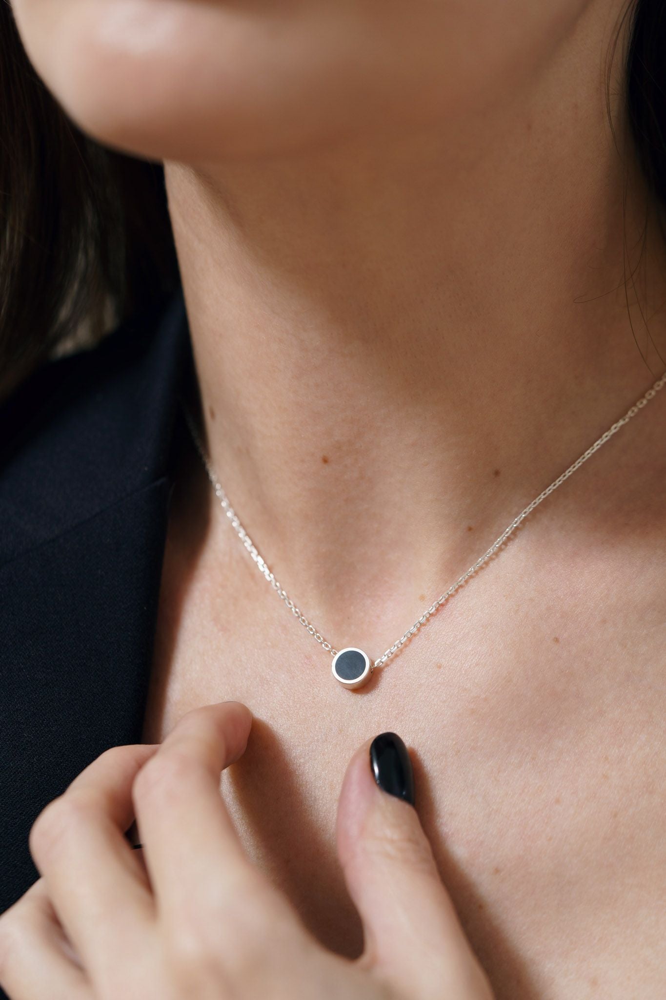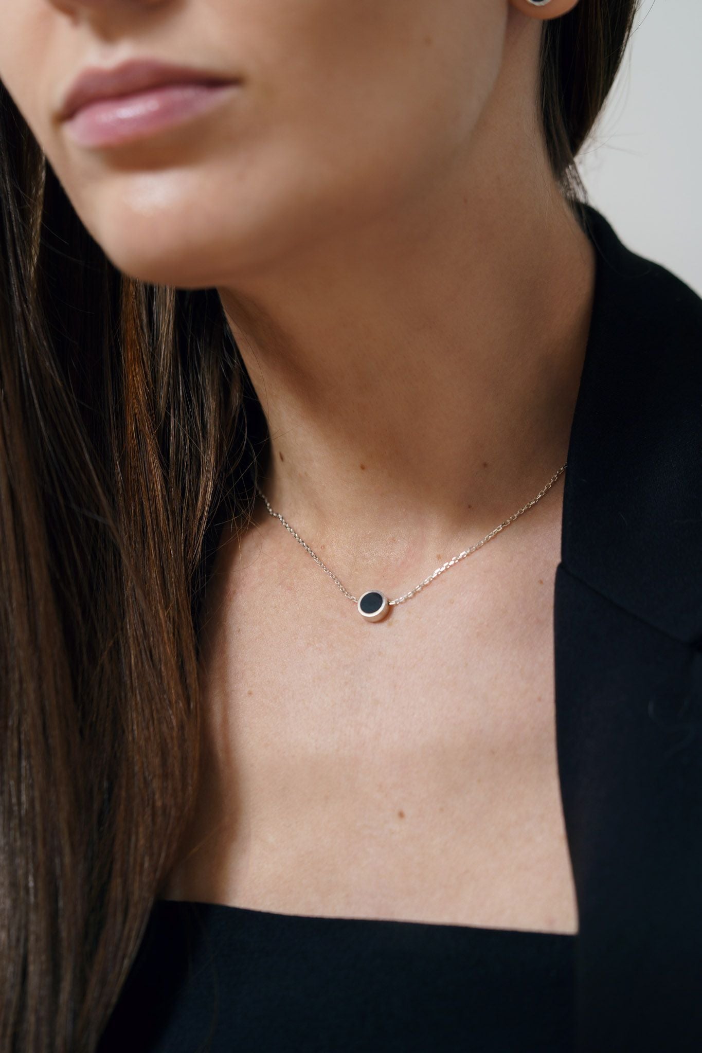 Necklace "Circle" (8 mm) with black enamel is a laconic decoration that embodies harmony and integrity. Its minimalist design with an emphasis on black enamel adds style and versatility. This necklace will perfectly complement both business and everyday looks.