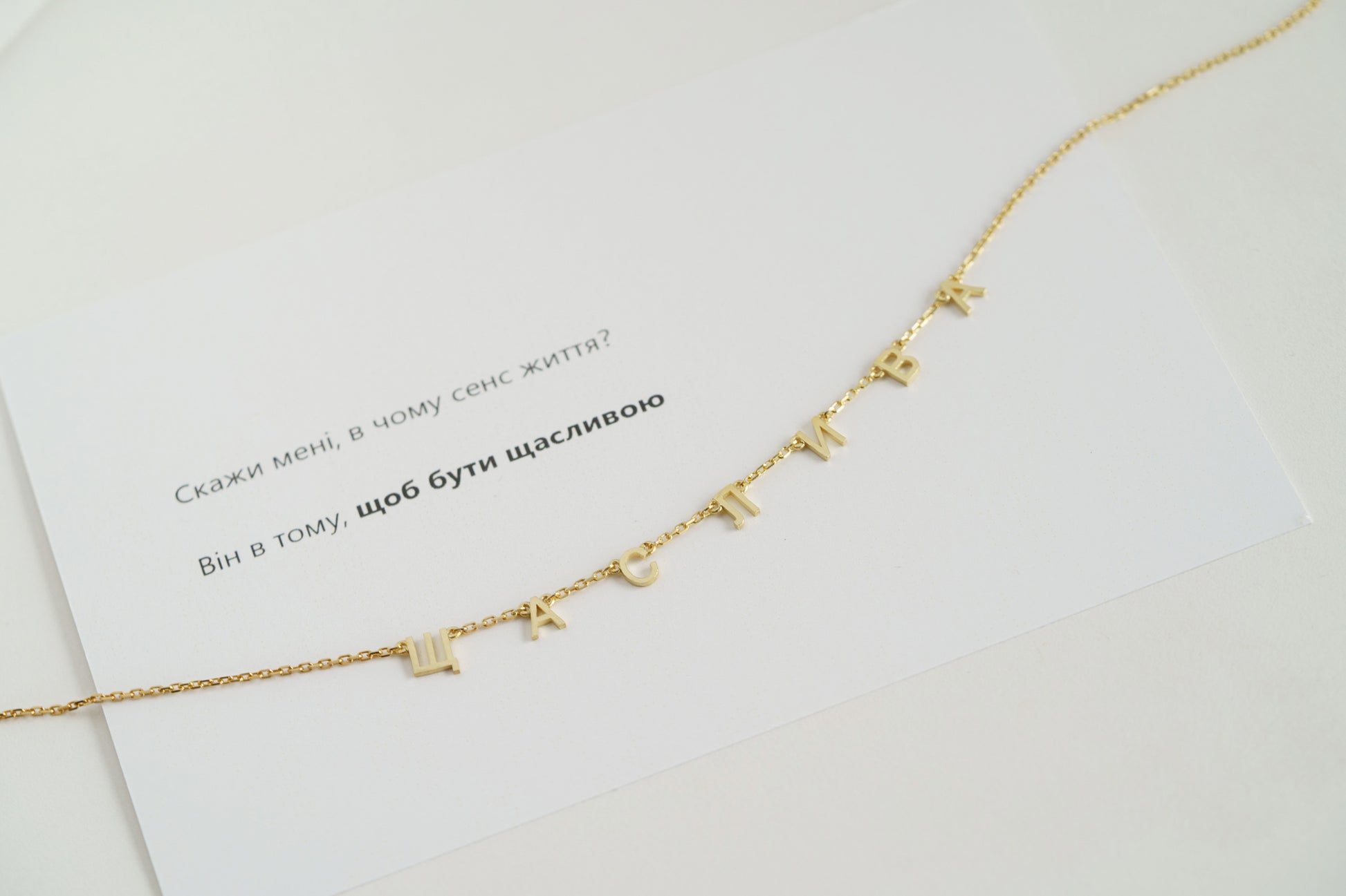 This impeccable, indisputable necklace, aptly named "Щаслива", is a perfect accessory for any occasion. The expertly crafted design exudes a sense of elegance and timeless beauty. Guaranteed to make you feel confident and irradiate positivity, this necklace is a must-have for any wardrobe.