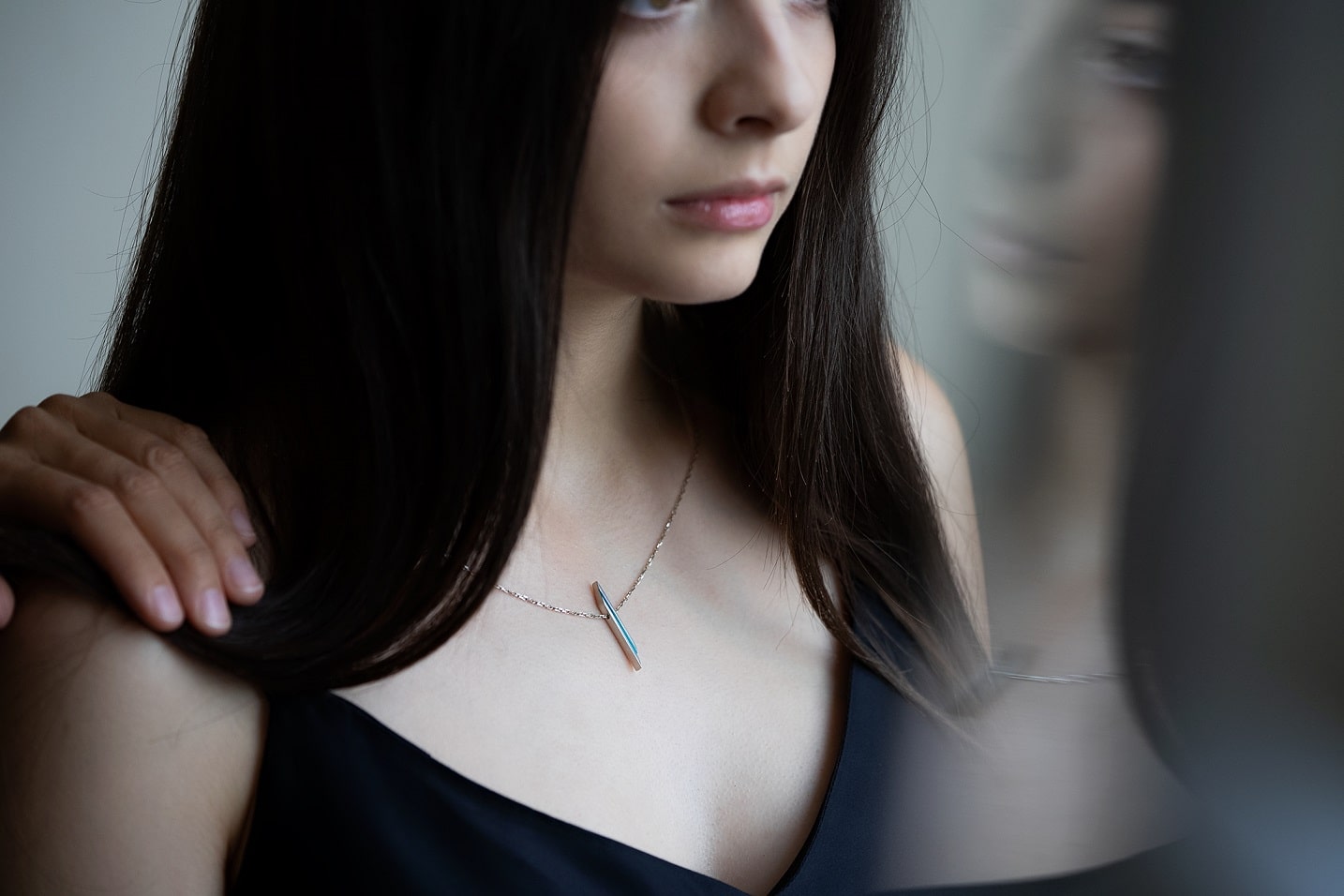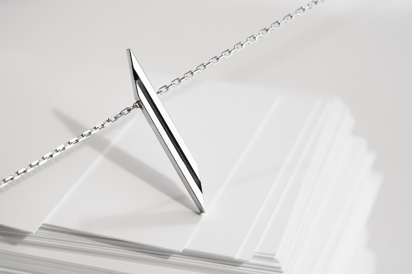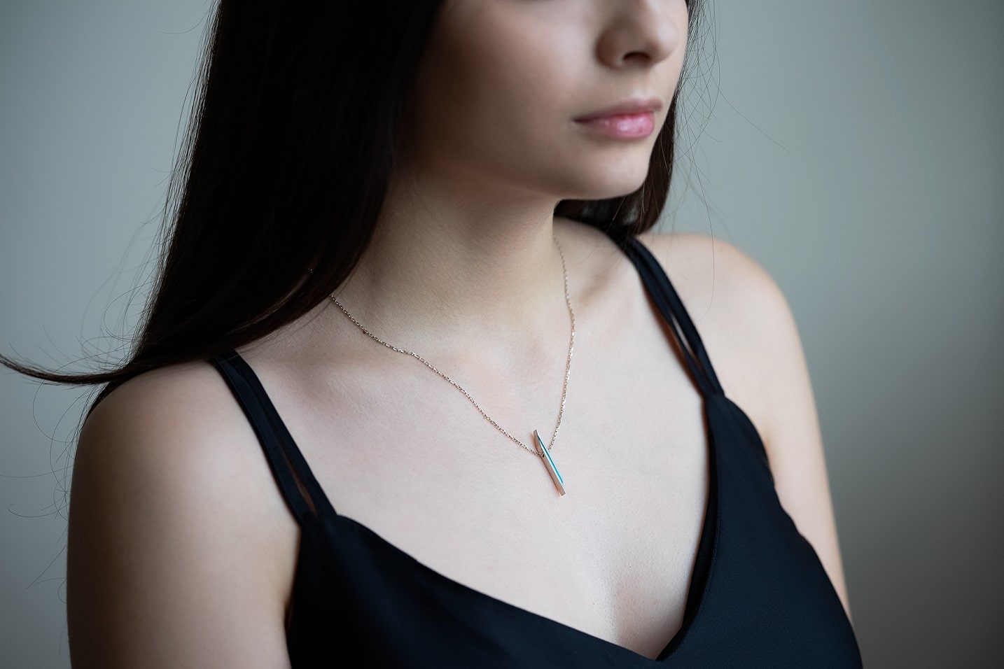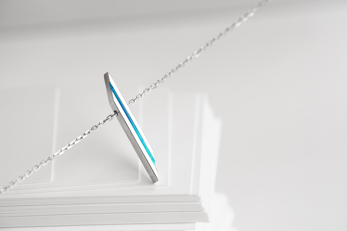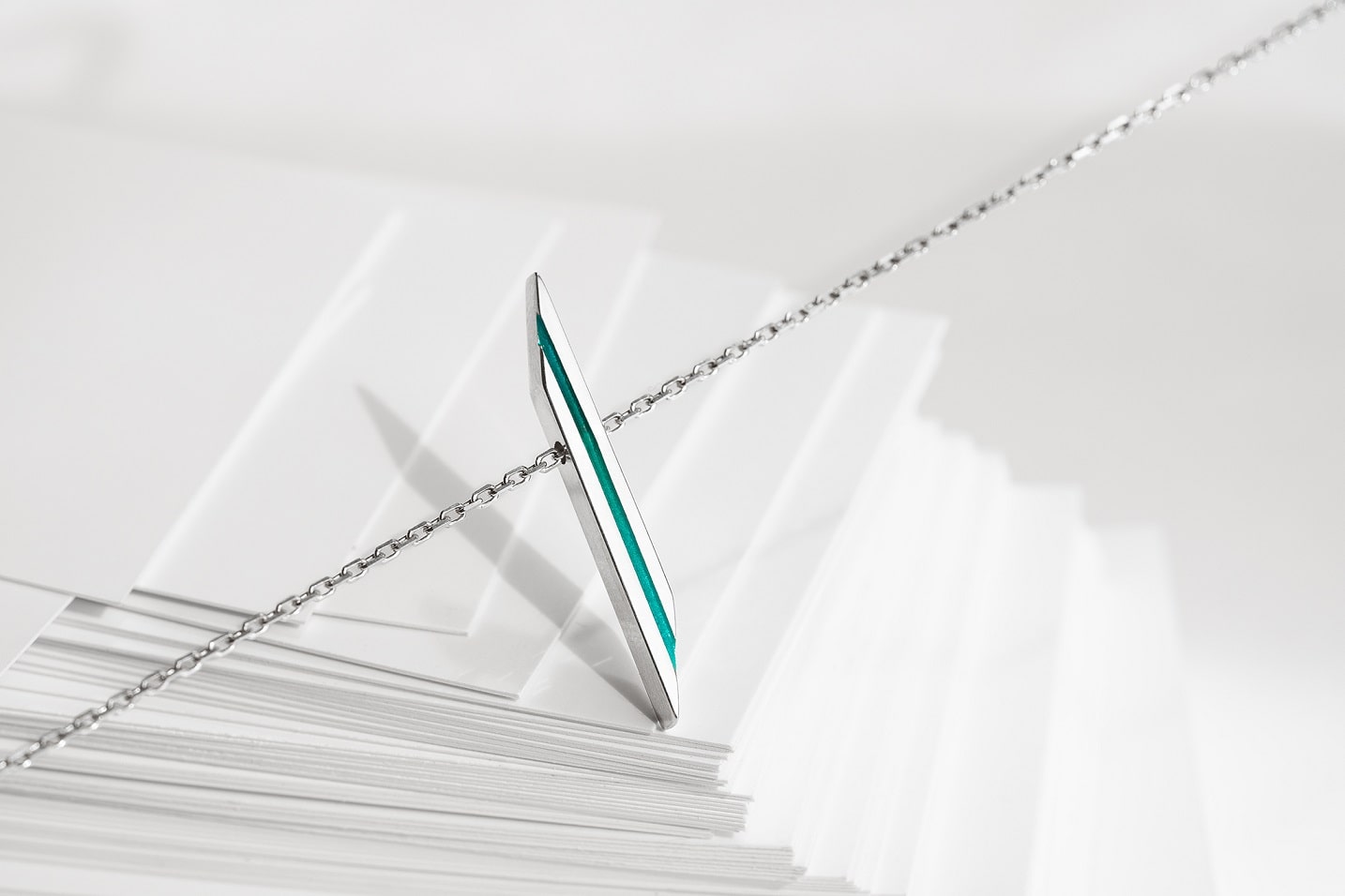 Necklace "Stripe" diagonal with enamel — a modern piece with a refined design. The diagonal stripe of vibrant enamel adds dynamism and expressiveness, highlighting your individual style. An ideal choice for those who appreciate minimalism with character.