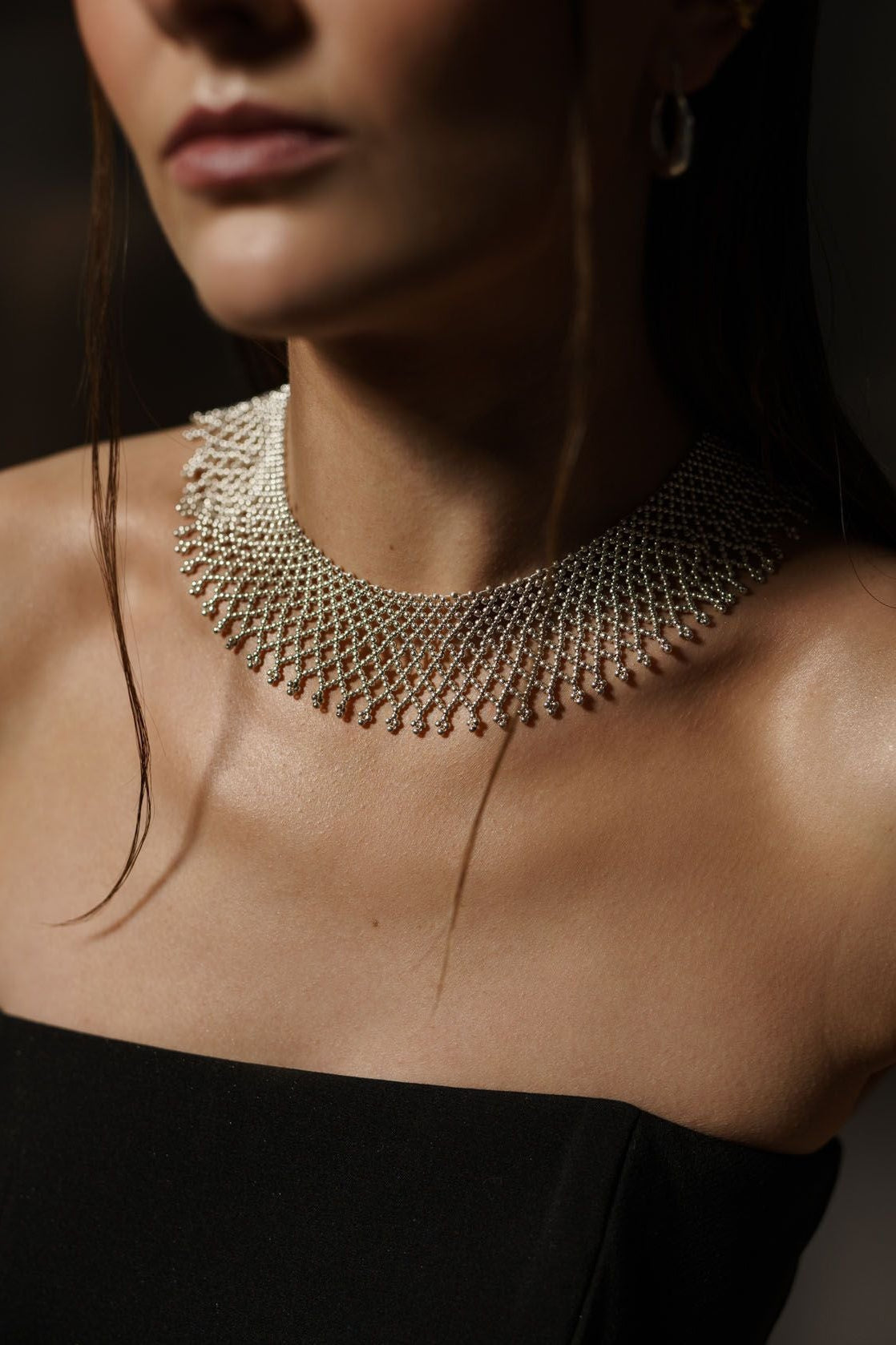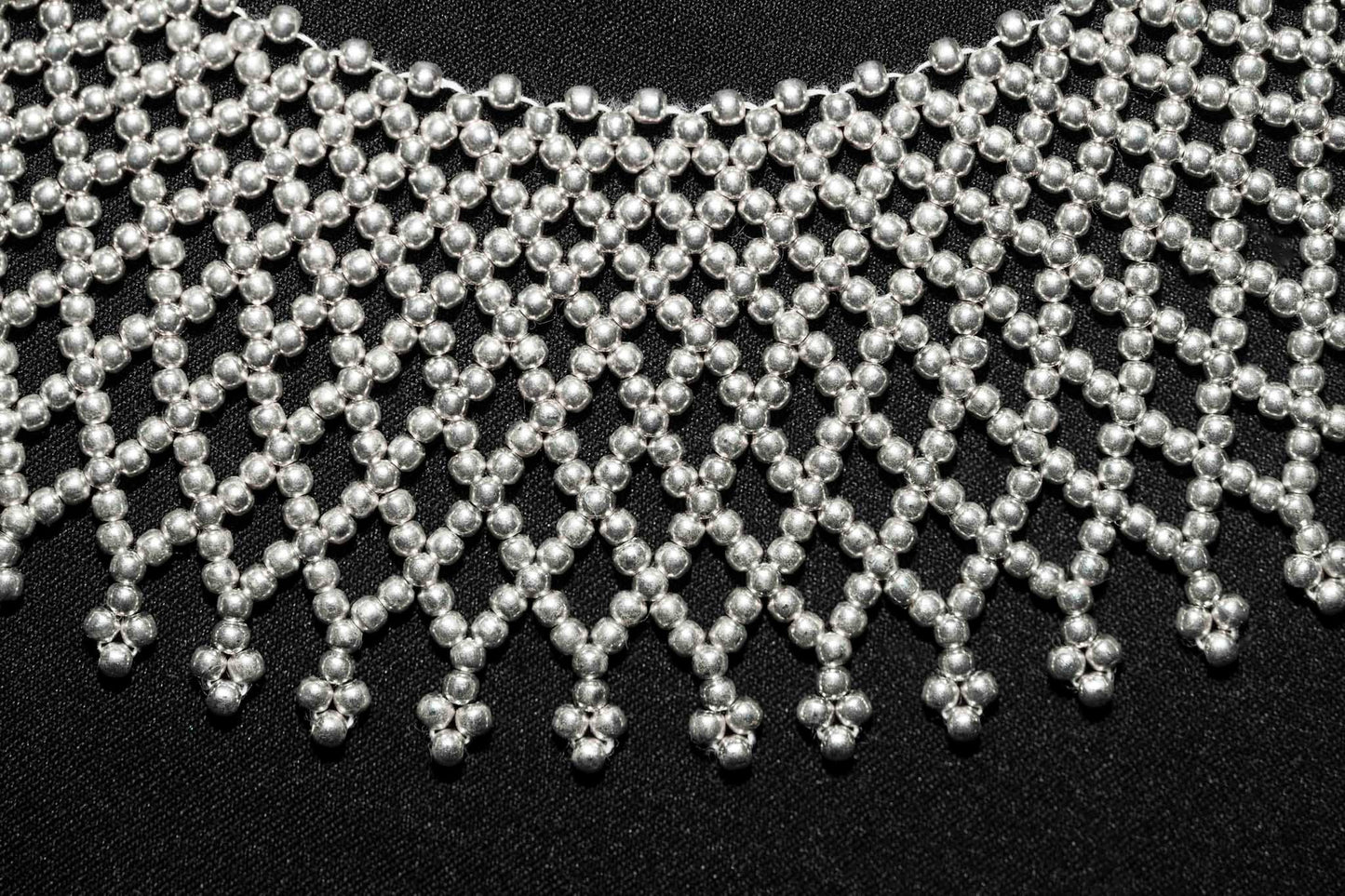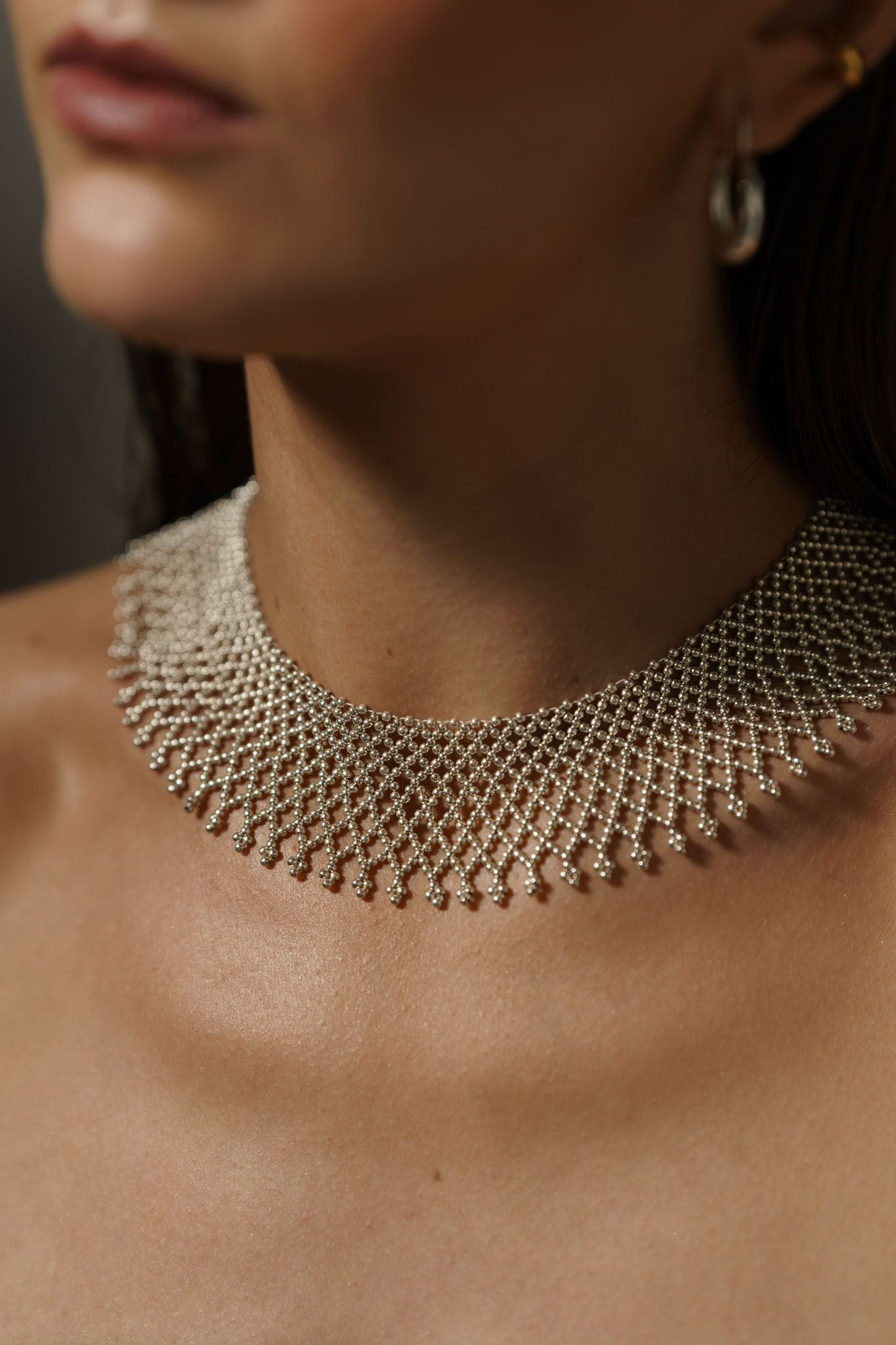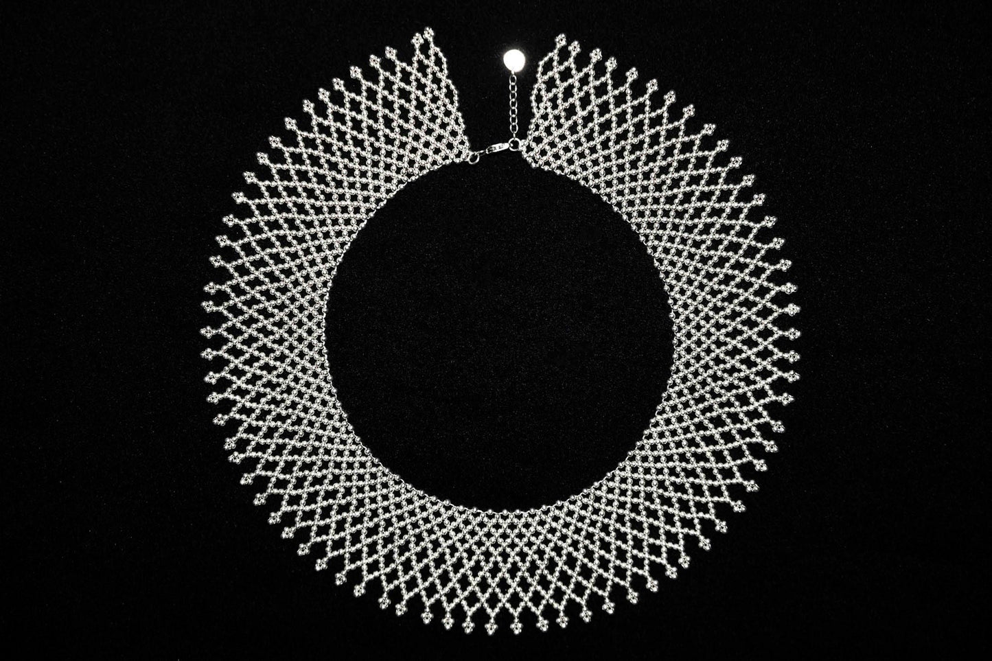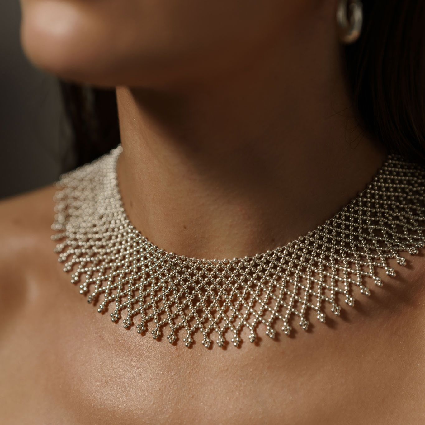 The "Sylyanka" necklace is a traditional piece of jewelry with a characteristic patterned weaving that creates an elegant and colorful mesh. This necklace reflects the richness of folk motifs and perfectly complements the image, giving it an ethnic charm. "Sylyanka" is suitable for both special events and for creating stylish accents in everyday looks.
