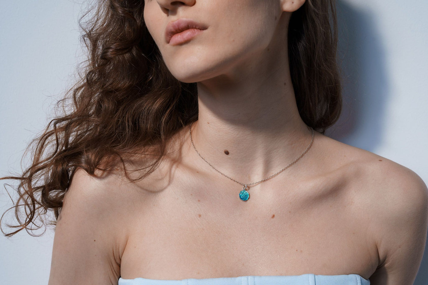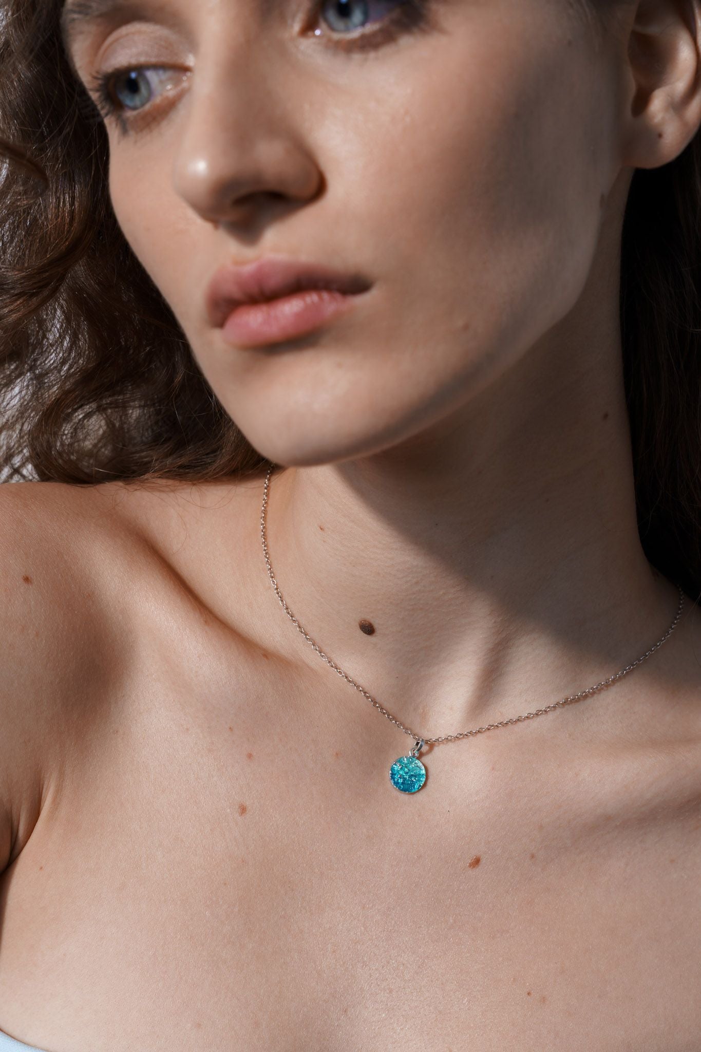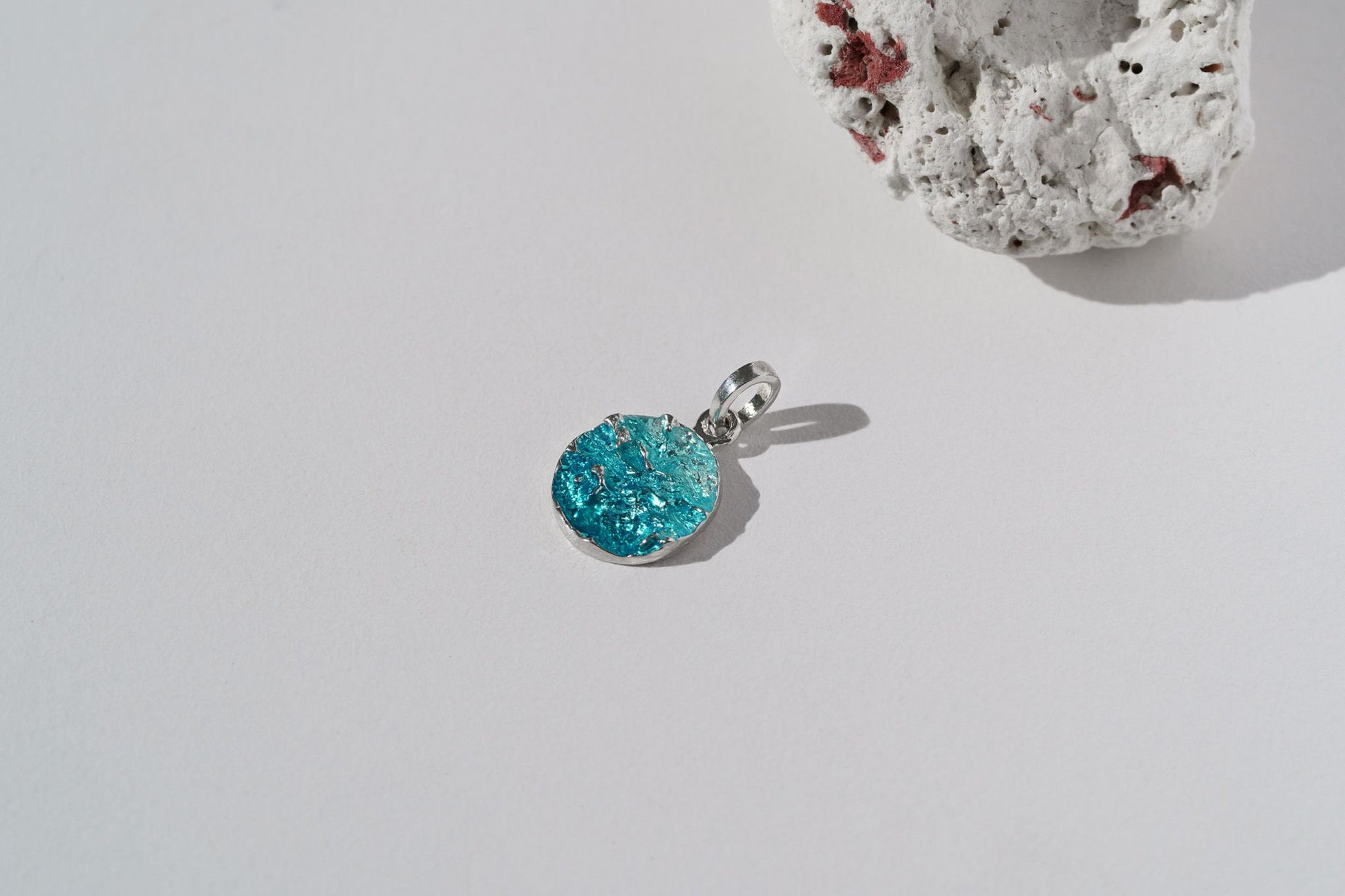 Pendant-disc "Wave" (10 mm) emerald is an elegant piece of jewelry that embodies the energy and tranquility of the sea. The deep blue color emphasizes depth and harmony, and the wavy relief adds dynamism. The perfect accessory for those who appreciate natural beauty and stylish simplicity.