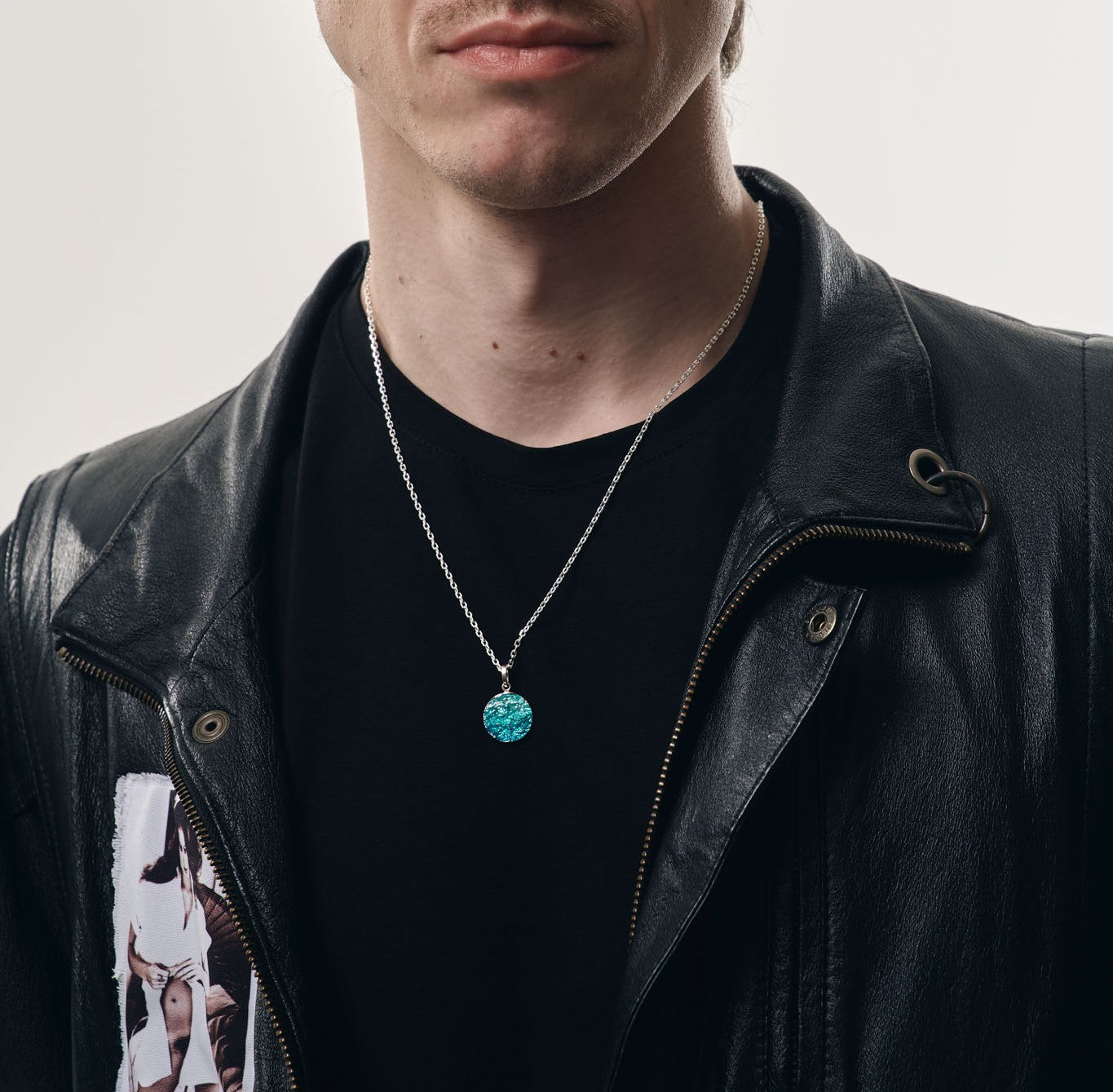 Pendant-disc "Wave" (15 mm) emerald is an elegant piece of jewelry that embodies the energy and tranquility of the sea. The deep blue color emphasizes depth and harmony, and the wavy relief adds dynamism. The perfect accessory for those who appreciate natural beauty and stylish simplicity.