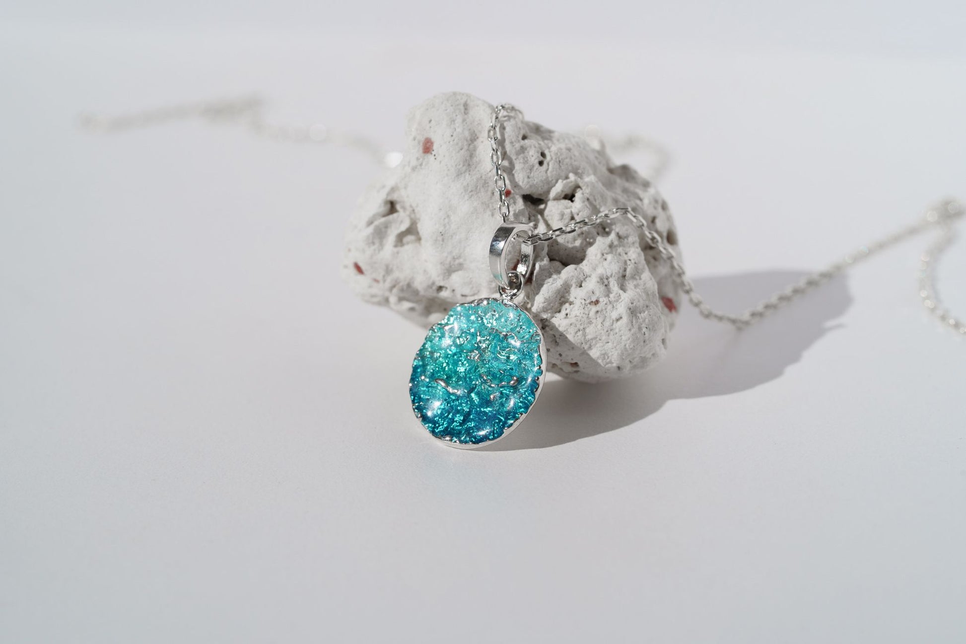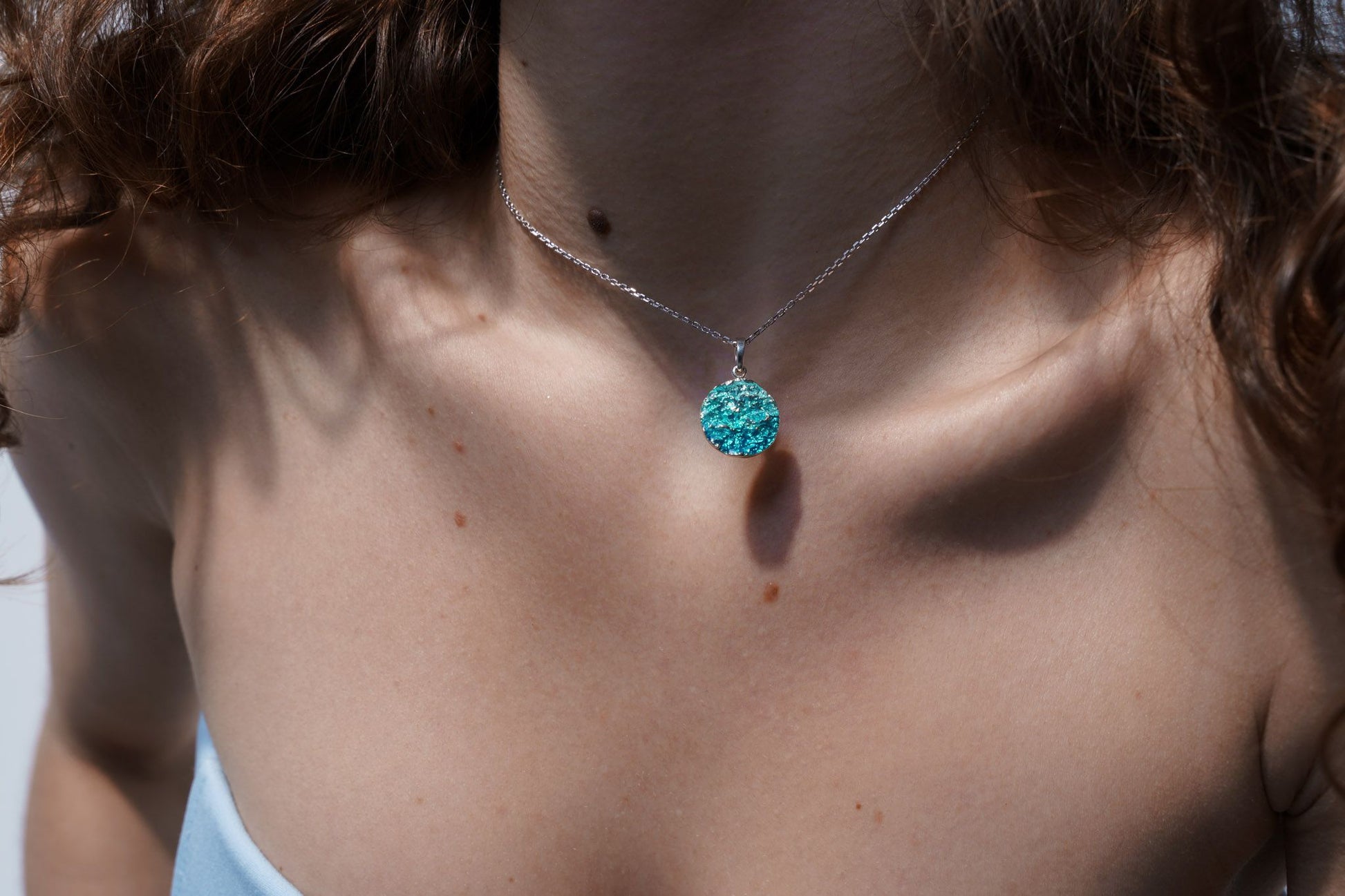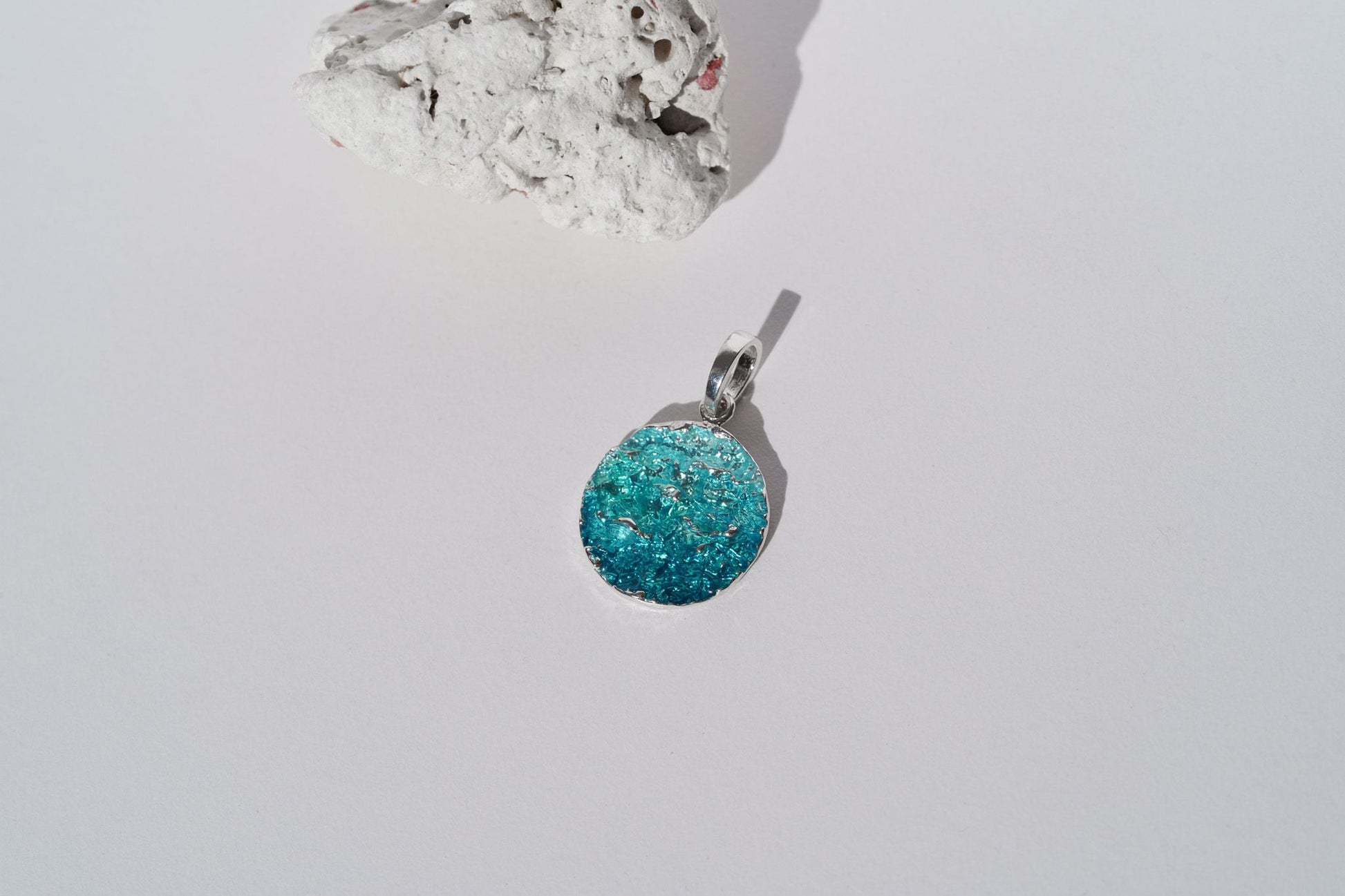 Pendant-disc "Wave" (15 mm) emerald is an elegant piece of jewelry that embodies the energy and tranquility of the sea. The deep blue color emphasizes depth and harmony, and the wavy relief adds dynamism. The perfect accessory for those who appreciate natural beauty and stylish simplicity.