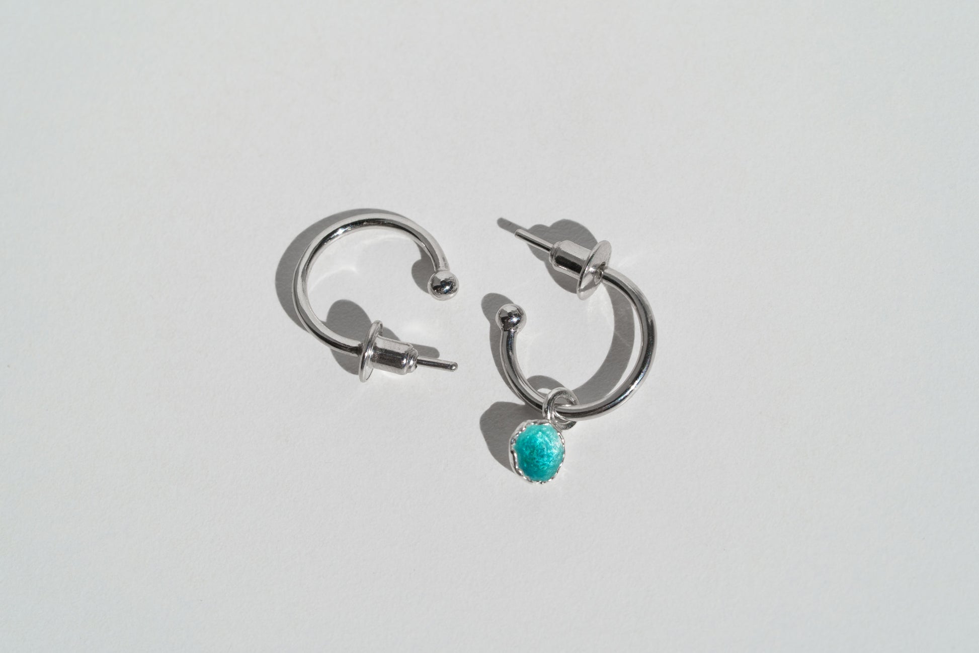 “Sea” hoop earring pendant (6 mm) is an elegant interchangeable element with emerald enamel that adds a rich color accent to the jewelry. Its minimalist shape and compact size make it a stylish addition to both everyday and special occasion looks.