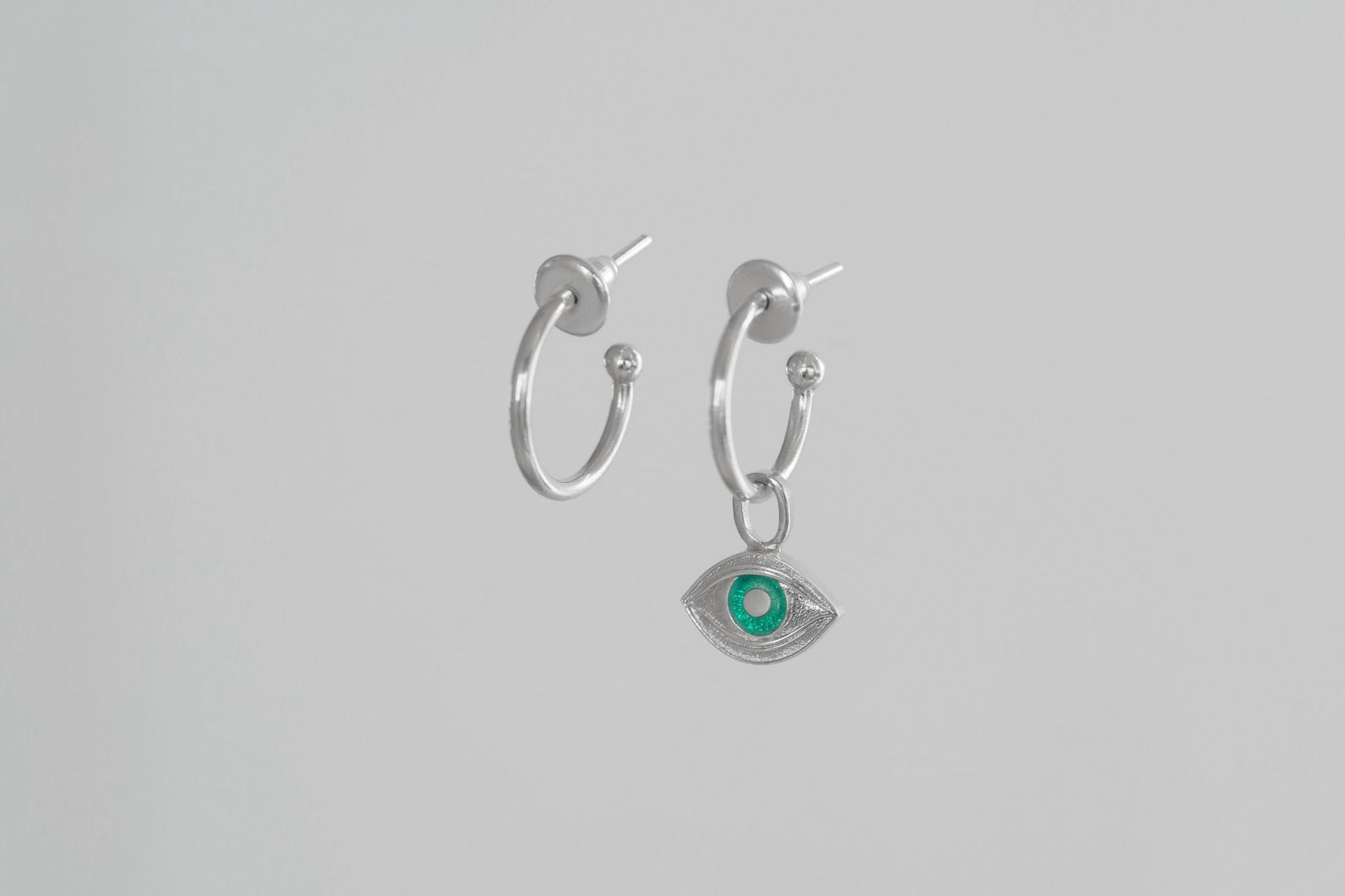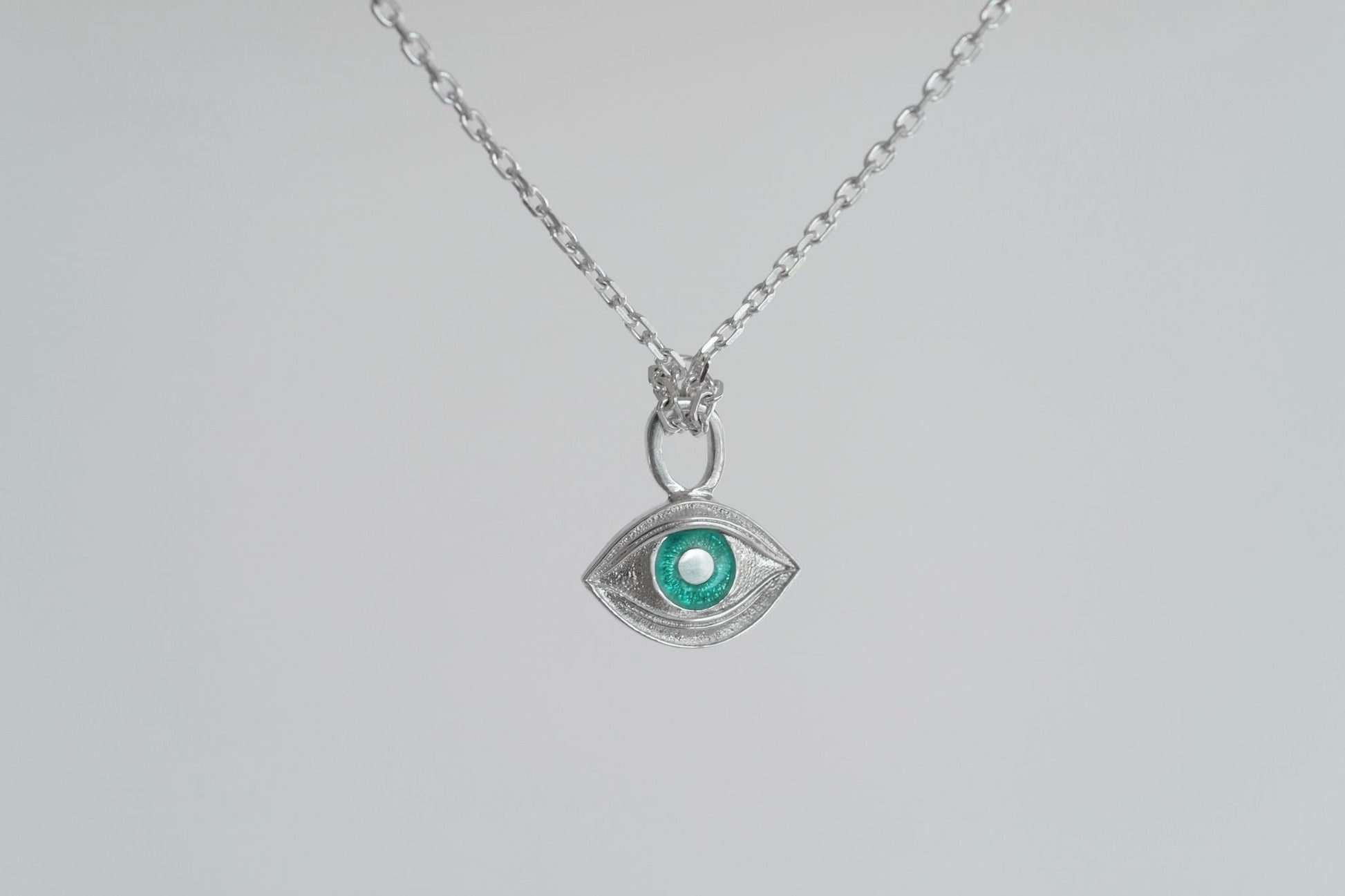 The pendant can be worn with hoop earrings or on a chain, tied with a simple knot.