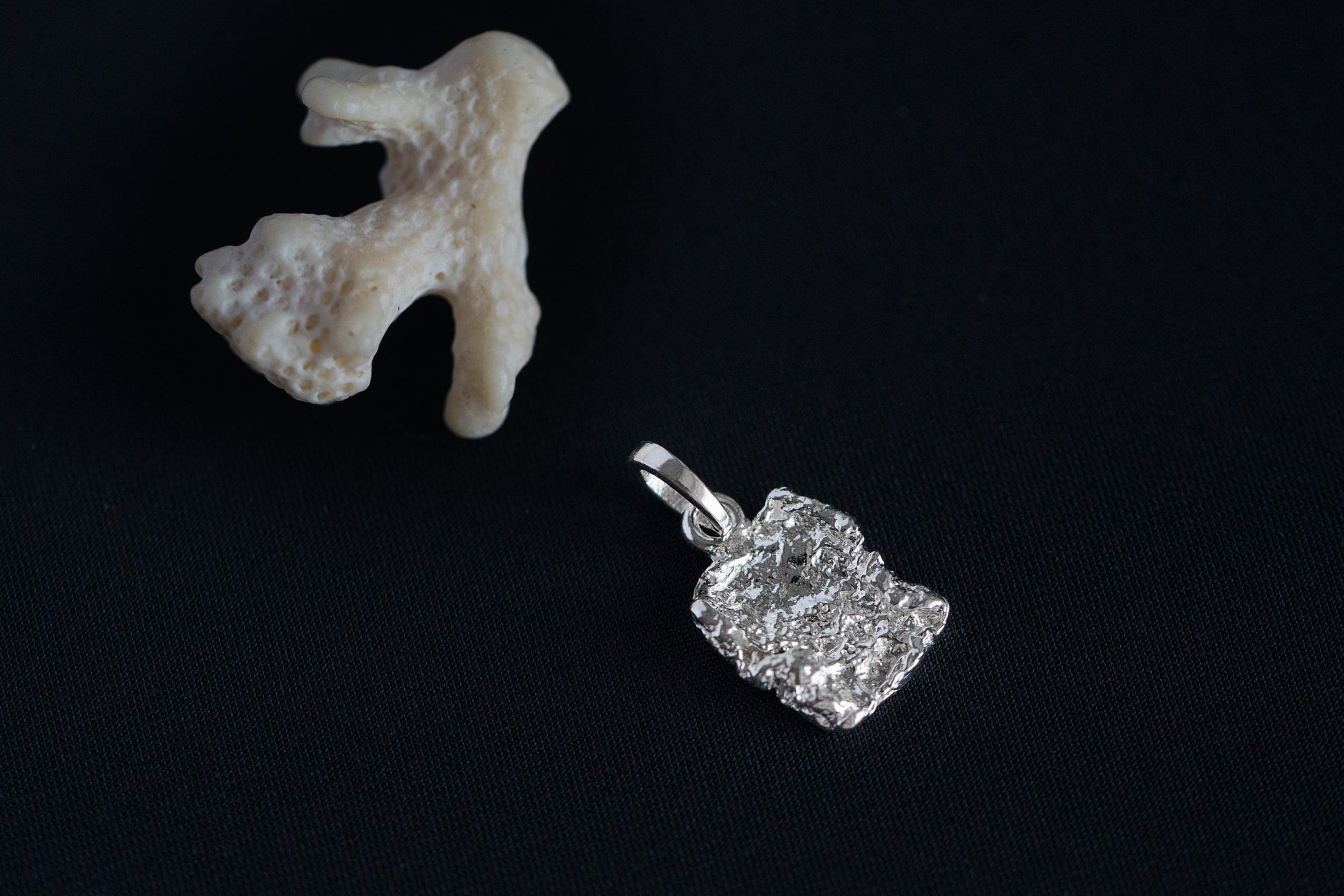 The Pendant "Sea foam" is a versatile accessory that can be worn on its own or paired with other pieces. With its unique design, it can add a touch of elegance to any outfit. The light or blackened finish allows for different styling options to suit your personal taste.