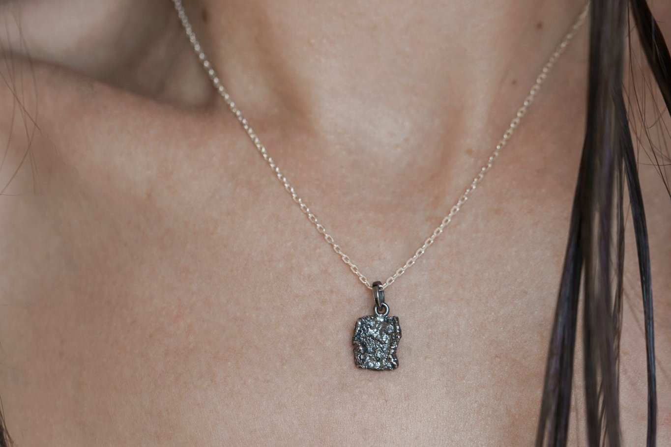 The Pendant "Sea foam" is a versatile accessory that can be worn on its own or paired with other pieces. With its unique design, it can add a touch of elegance to any outfit. The light or blackened finish allows for different styling options to suit your personal taste.