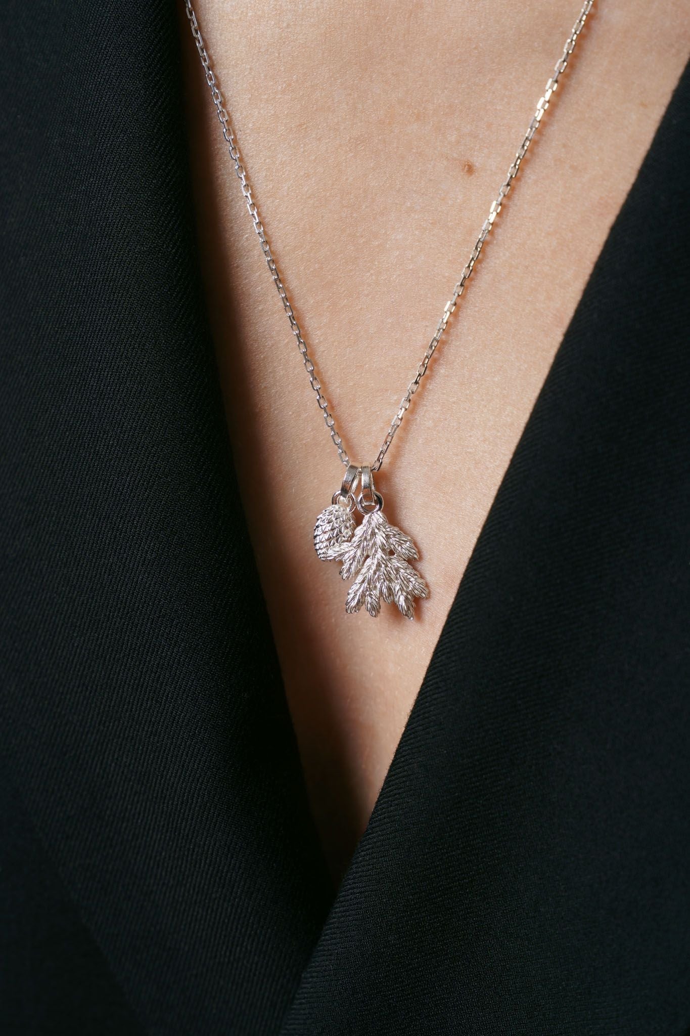 The “Spruce Branch“ is a talisman for those who love the mountains and want to carry a piece of the Carpathian forest with them at all times. It pairs perfectly with the “Spruce Cone” pendant, the “Spruce Branch” earrings, and the “Spruce Cone” earrings.