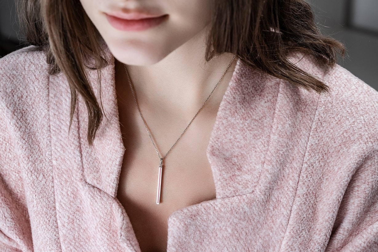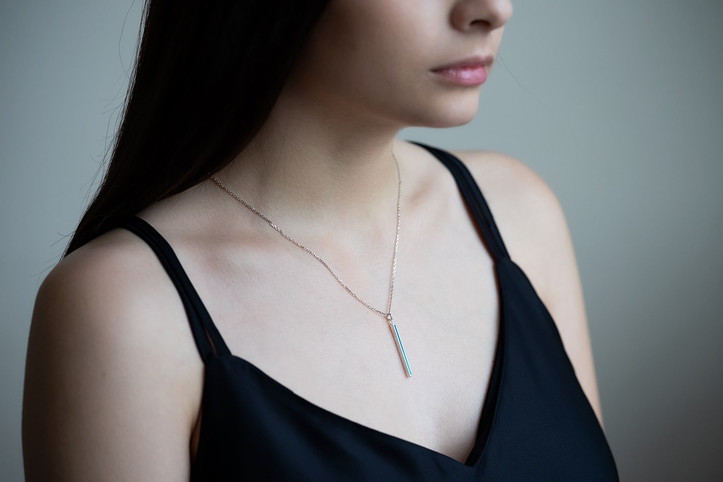 Pendant "Stripe" (31 mm) with enamel — an elegant piece with a sleek, elongated design. The vibrant enamel accent adds a touch of modernity and style. An ideal choice for those who appreciate minimalism with a hint of individuality.