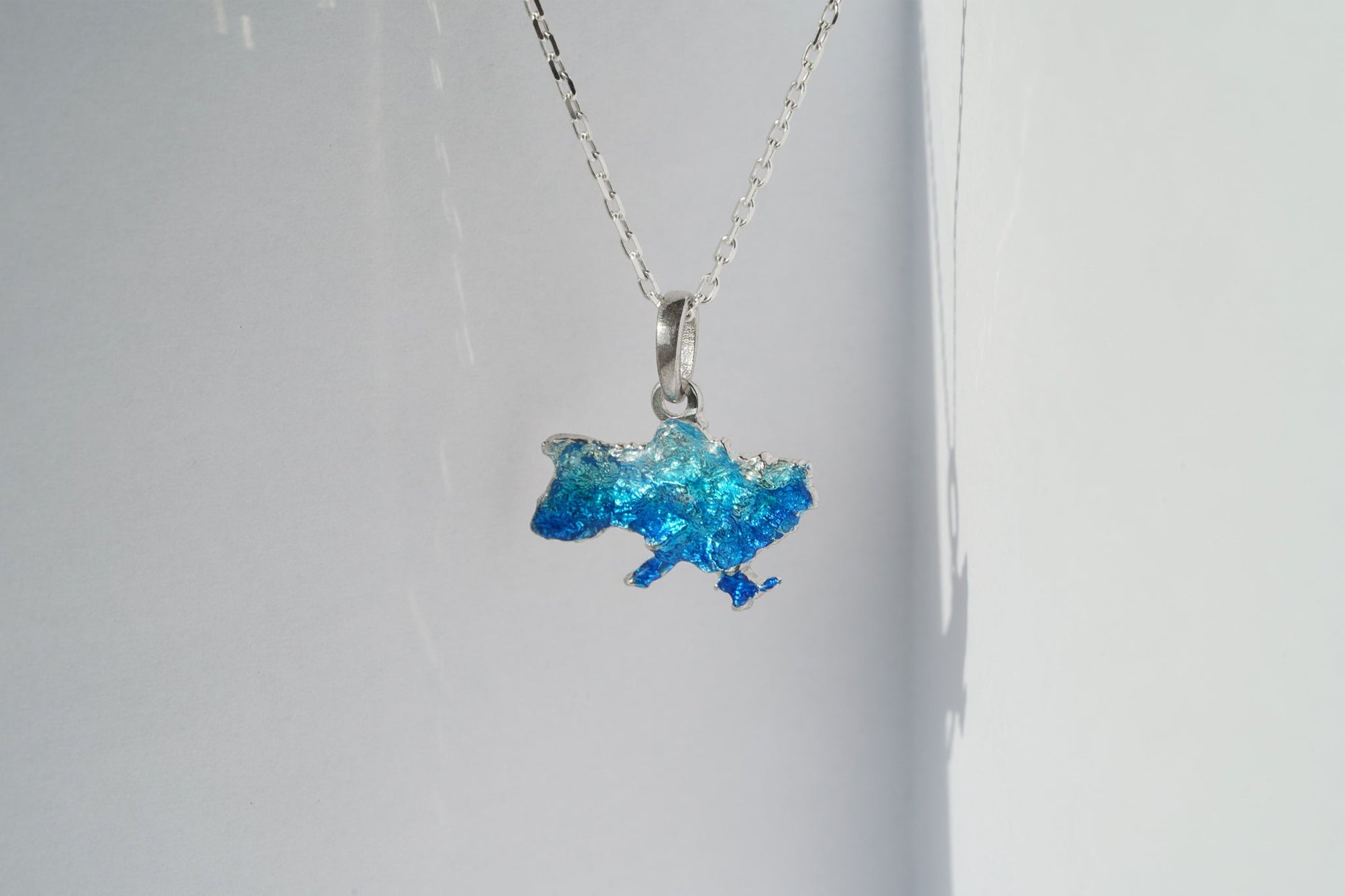 The pendant "United" embossed with enamel is an elegant decoration in the form of a map of Ukraine, which combines a three-dimensional design with the brightness of enamel, symbolizing unity and harmony. The embossed details create an expressive texture, and the colored enamel gives the pendant a special accent and liveliness. The pendant in the form of a map of Ukraine will become a stylish symbol of inner integrity and connection with the native land, suitable for those who appreciate the deep meaning in every detail.