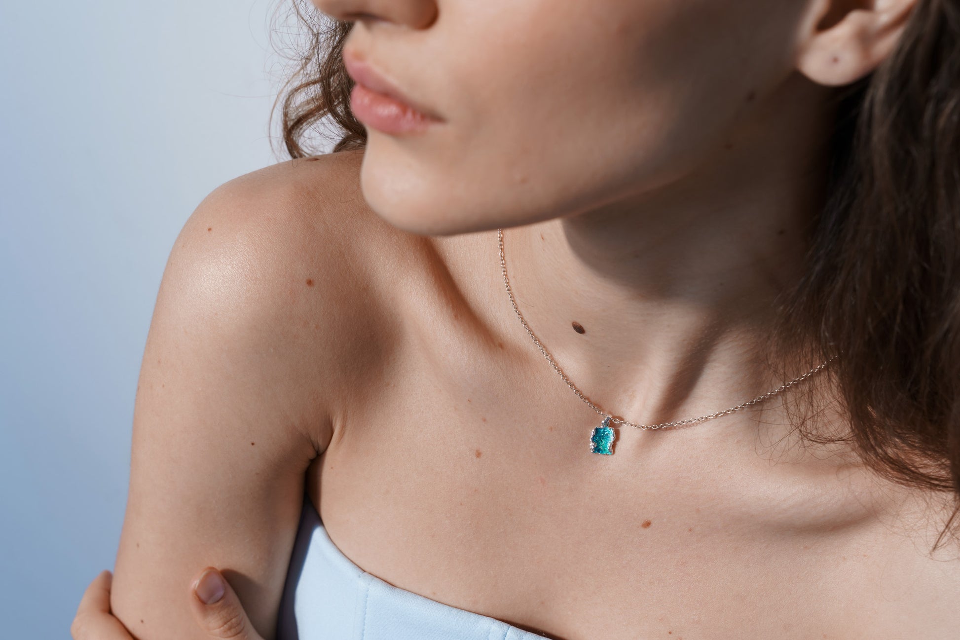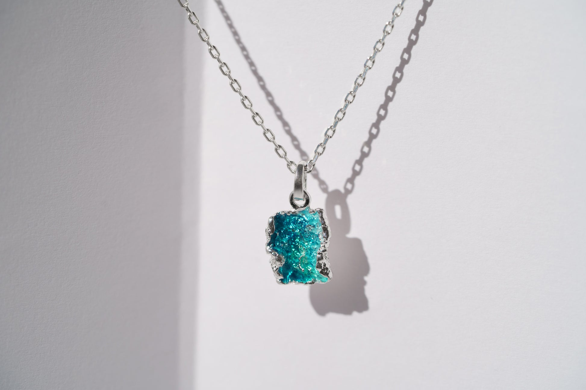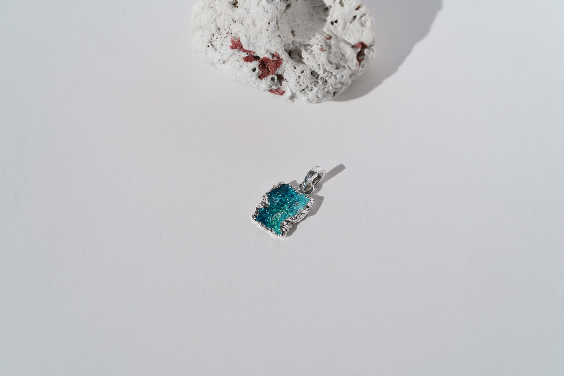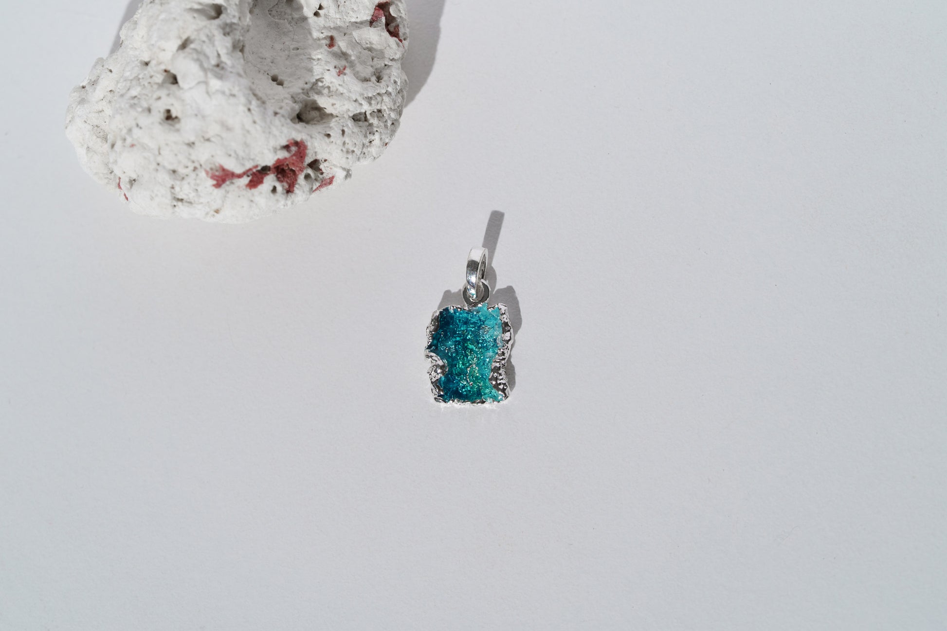 The "Wave" pendant is a stunning piece of jewelry that features a beautifully crafted wave design. Available in both blue and emerald enamel, this pendant is a perfect accessory to elevate any outfit. With its delicate details and unique design, it will surely catch the eye.