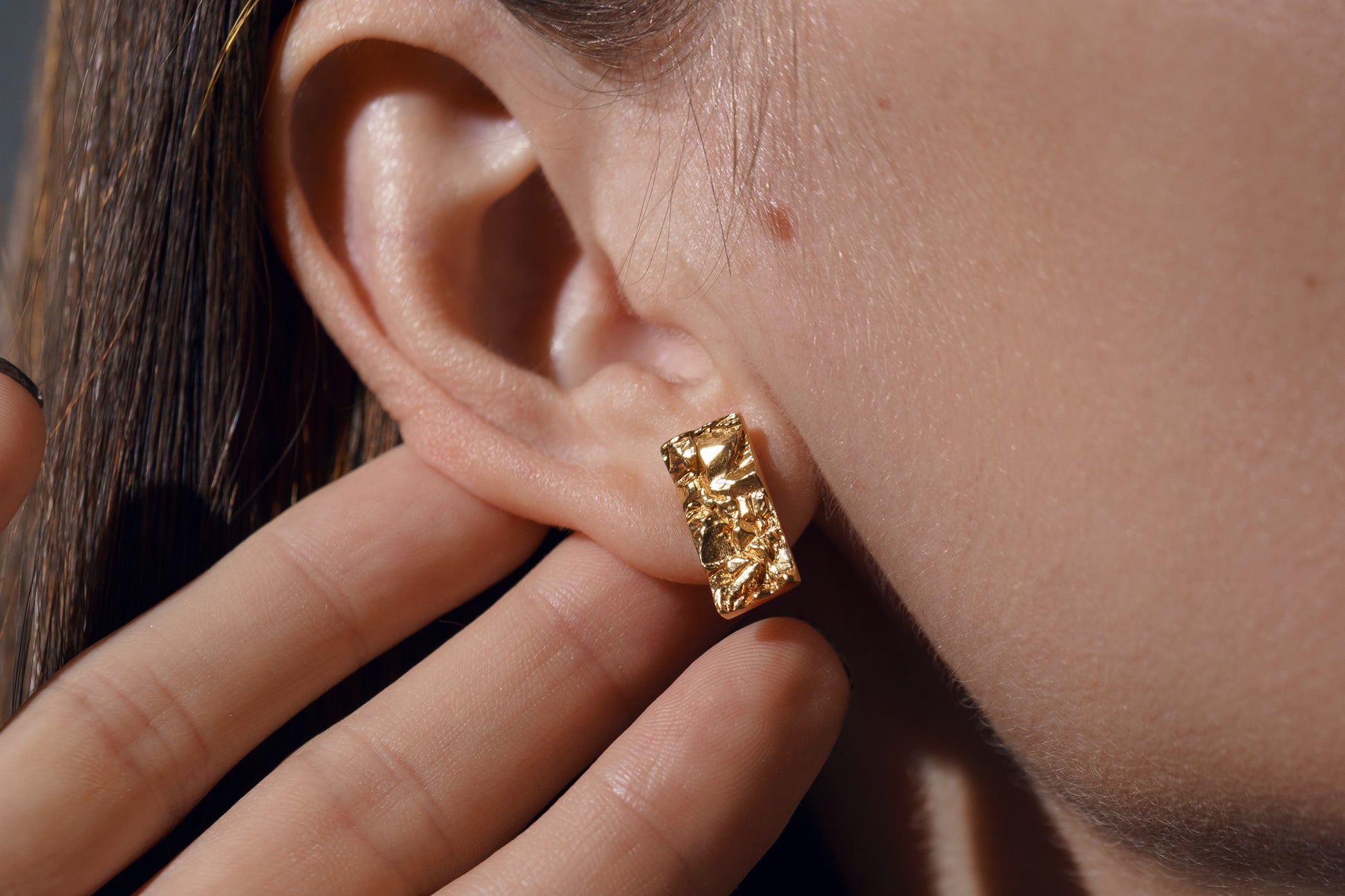 When selecting gold earrings, it's important to consider the shape and thickness of your earlobe, as well as the distance from the piercing to the edge of the lobe.