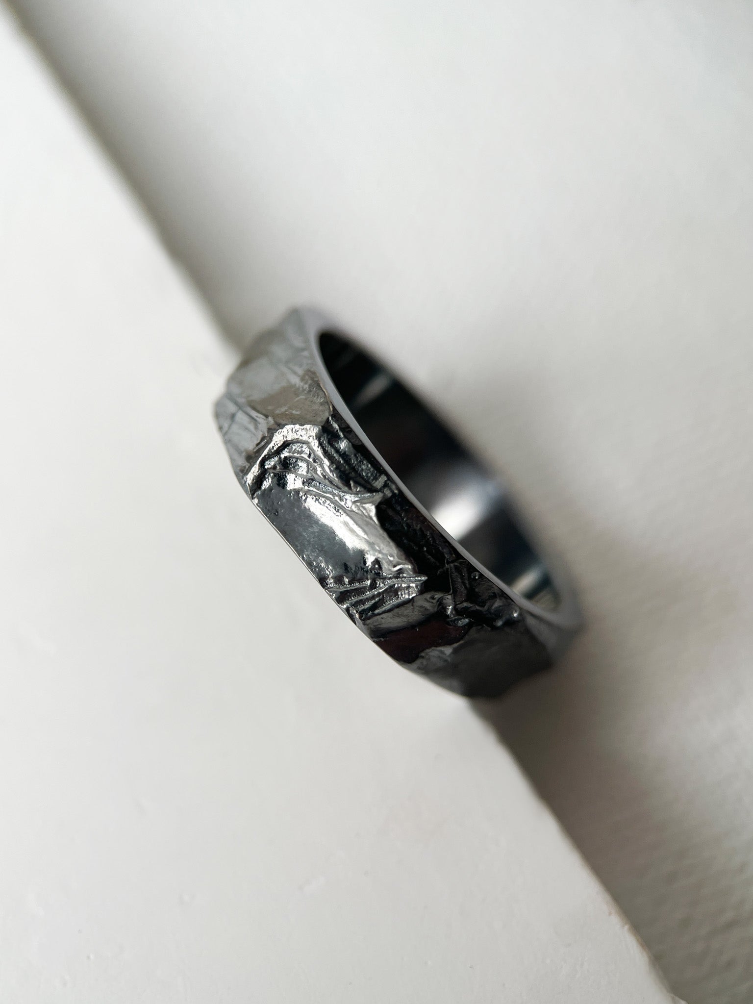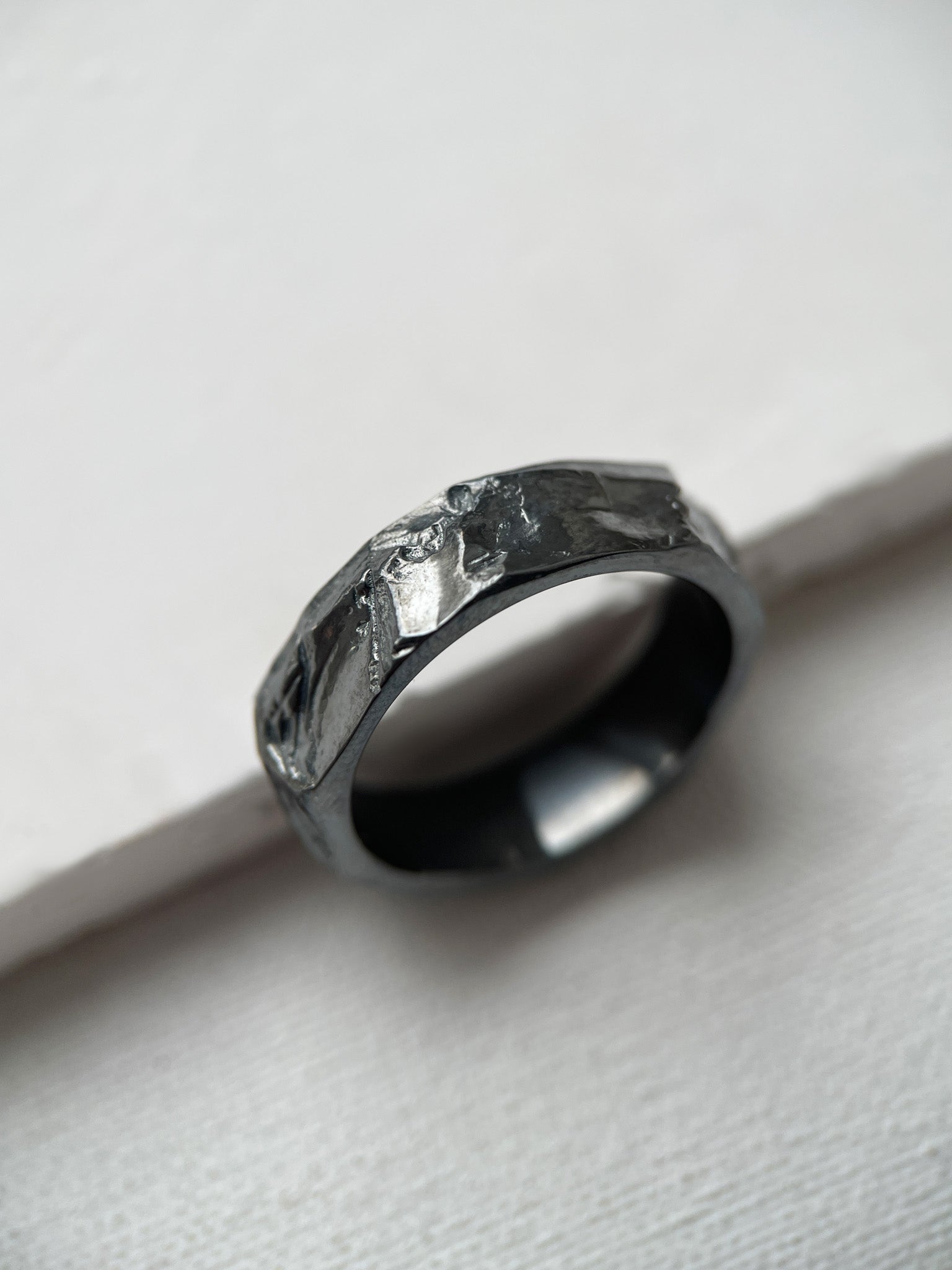 Ring "Anthracite" blackened (6 mm) — a refined piece of jewelry with a minimalist design that reflects the strength and depth of natural materials. The blackening adds a distinctive expressiveness, making it a striking accent. An ideal choice for those who appreciate restraint with a touch of individuality.