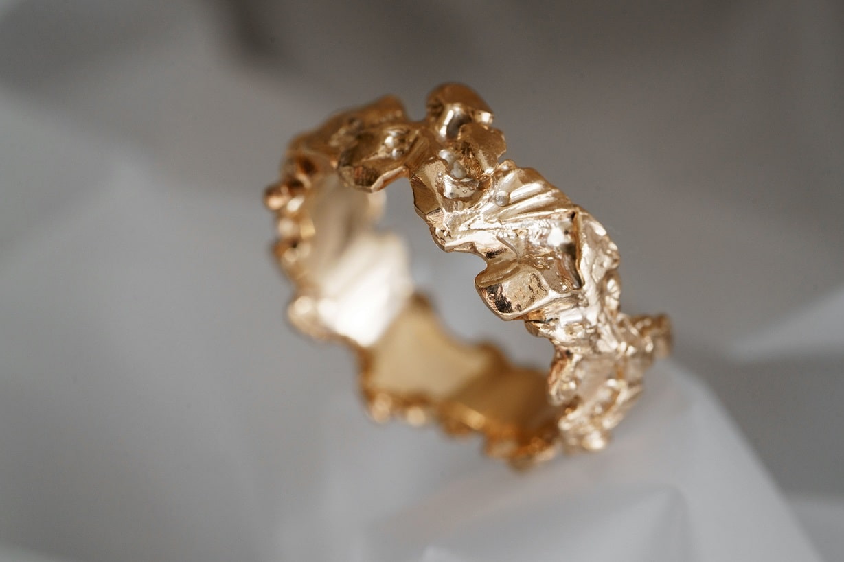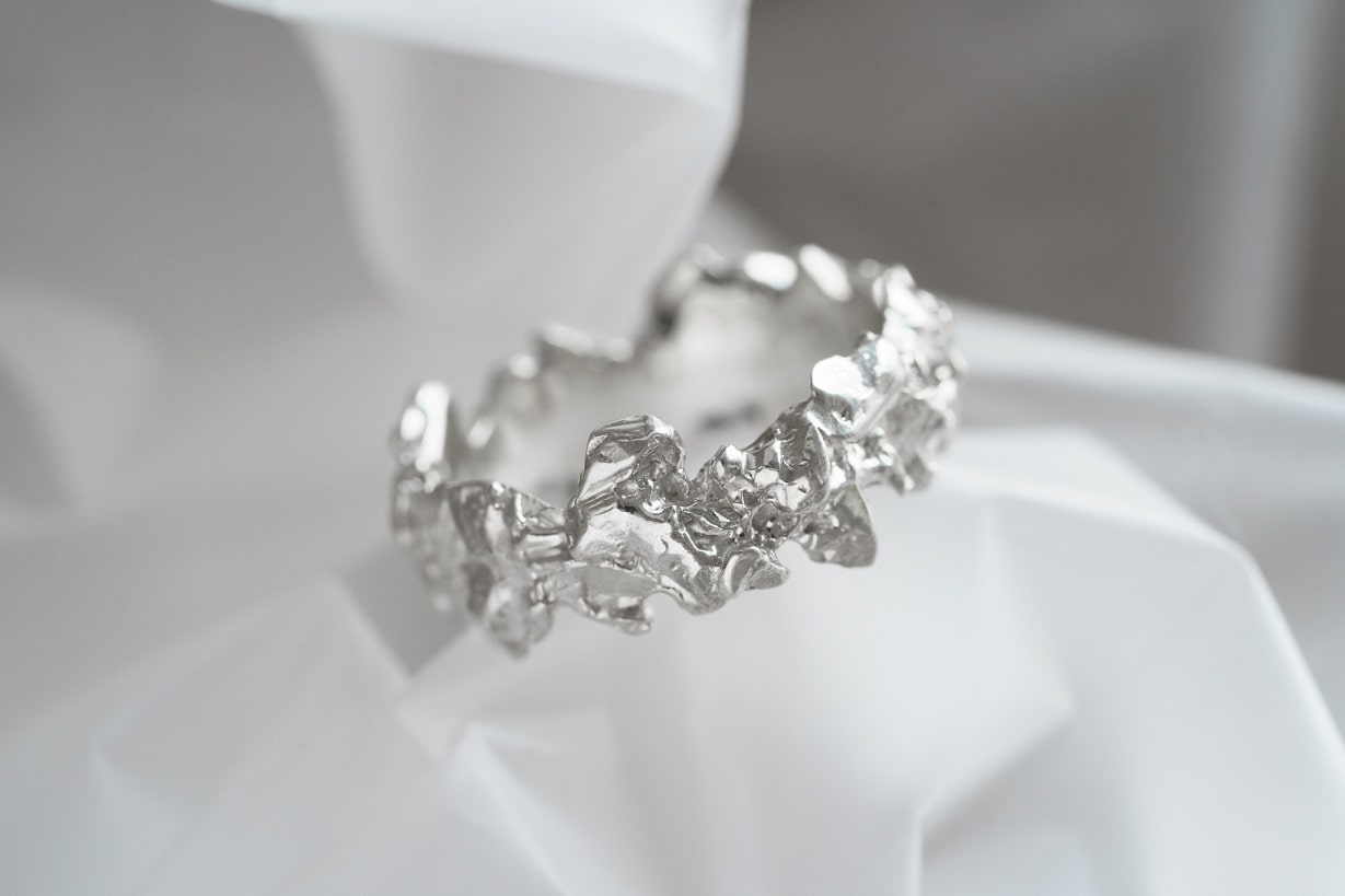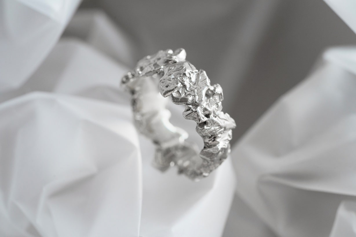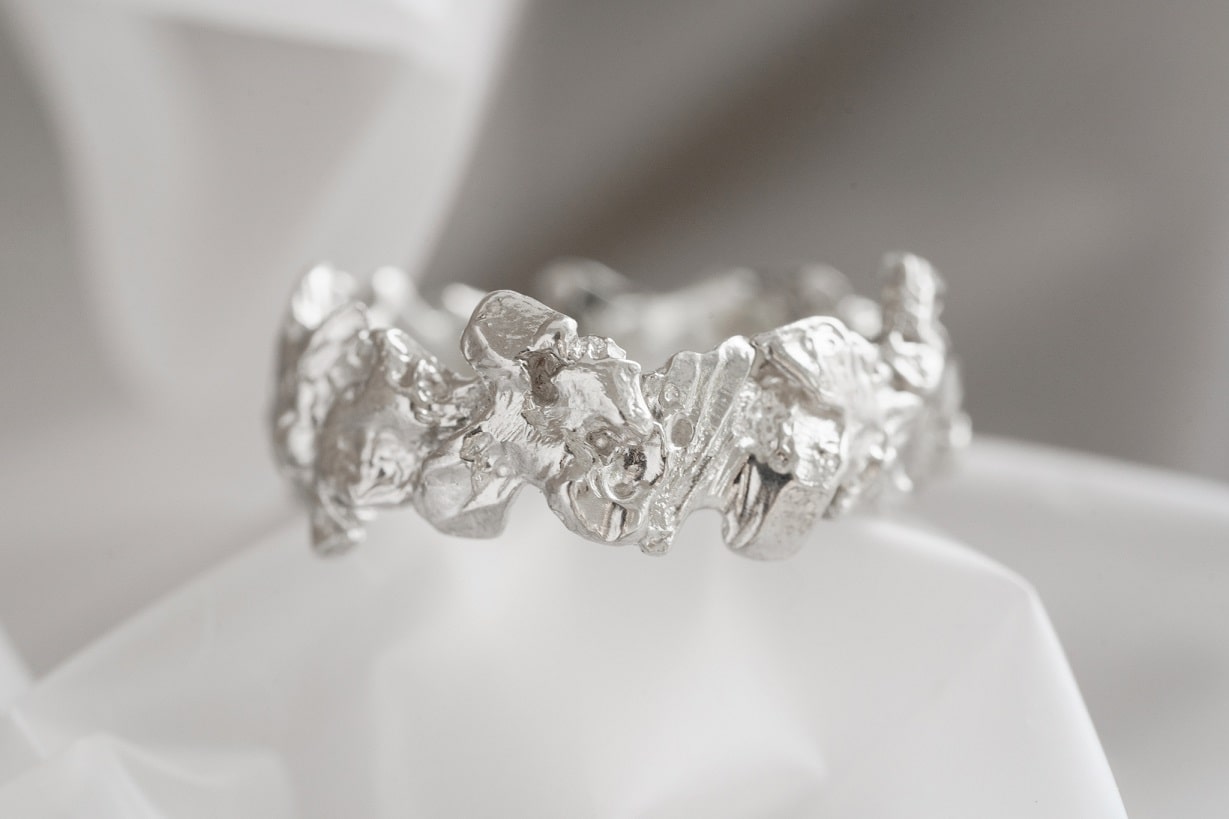 The "Asteroidal belt" light ring (7mm) combines an embossed design with stylish elements for a unique and eye-catching accessory. Elevate any outfit with this must-have piece that exudes confidence and individuality.
