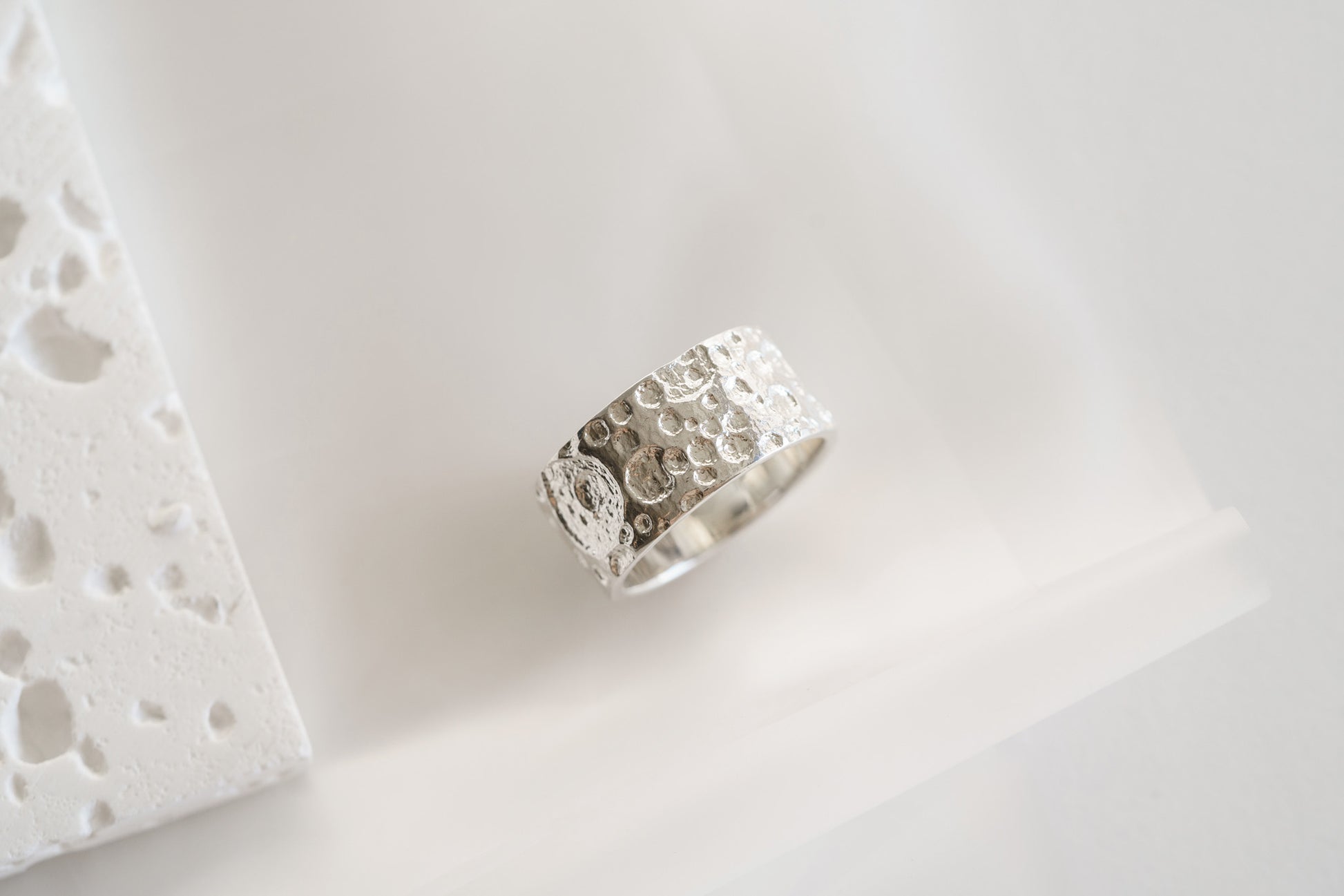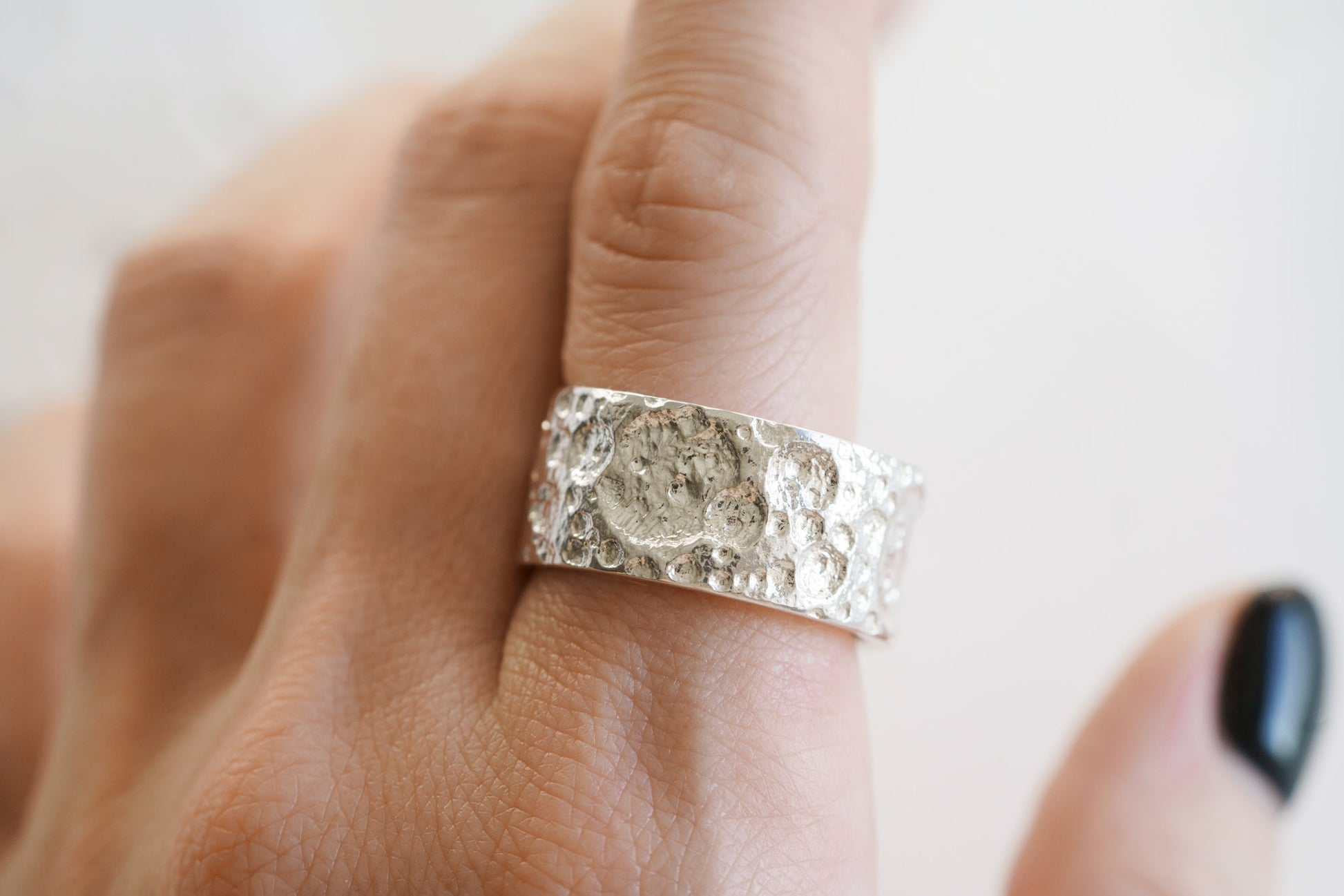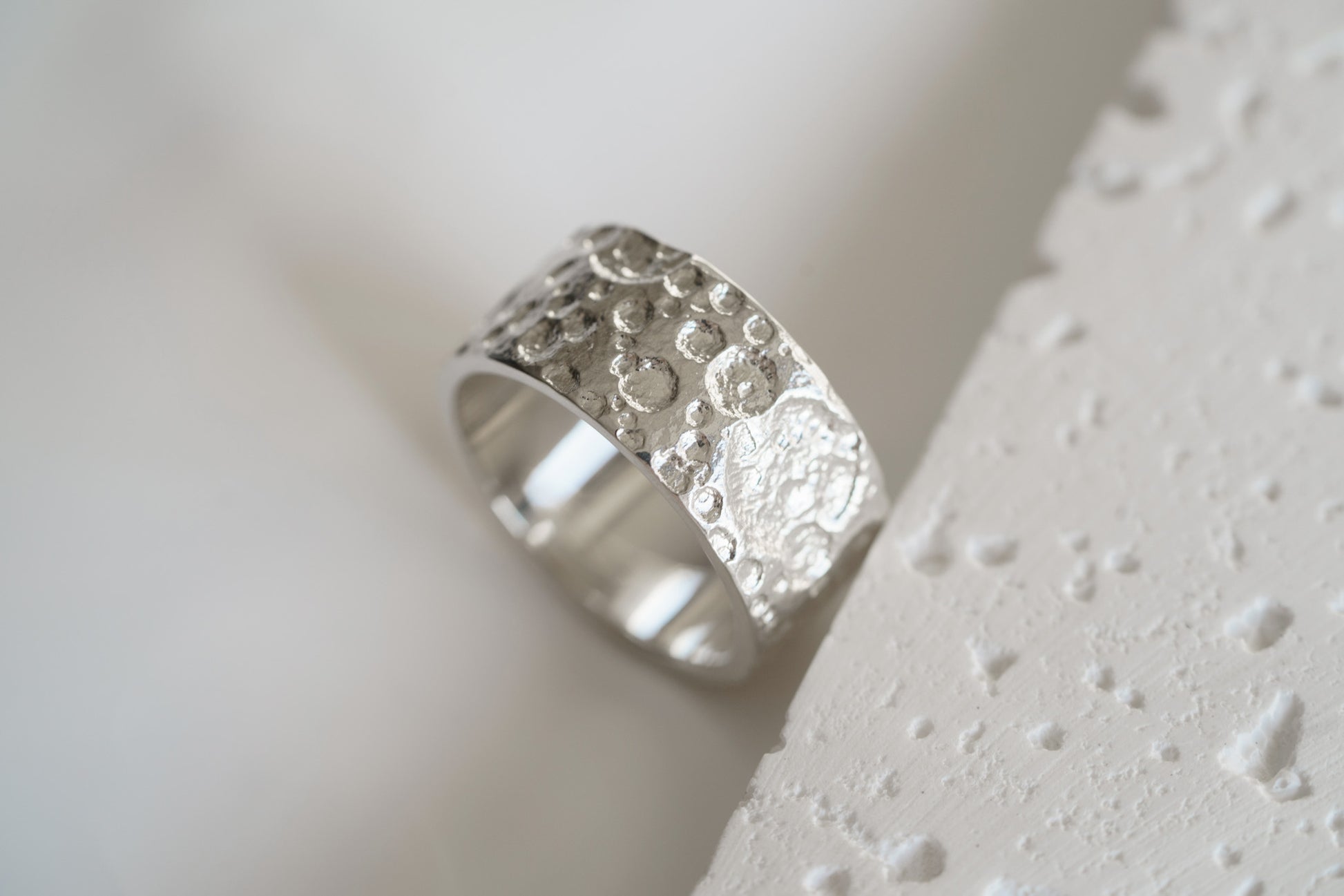 Experience the harmonious design of 10mm wide "Light moon" ring. With its stylish appearance, this ring is a perfect accessory to elevate your look. Crafted with precision and details, its unique design will bring a touch of elegance to any outfit.