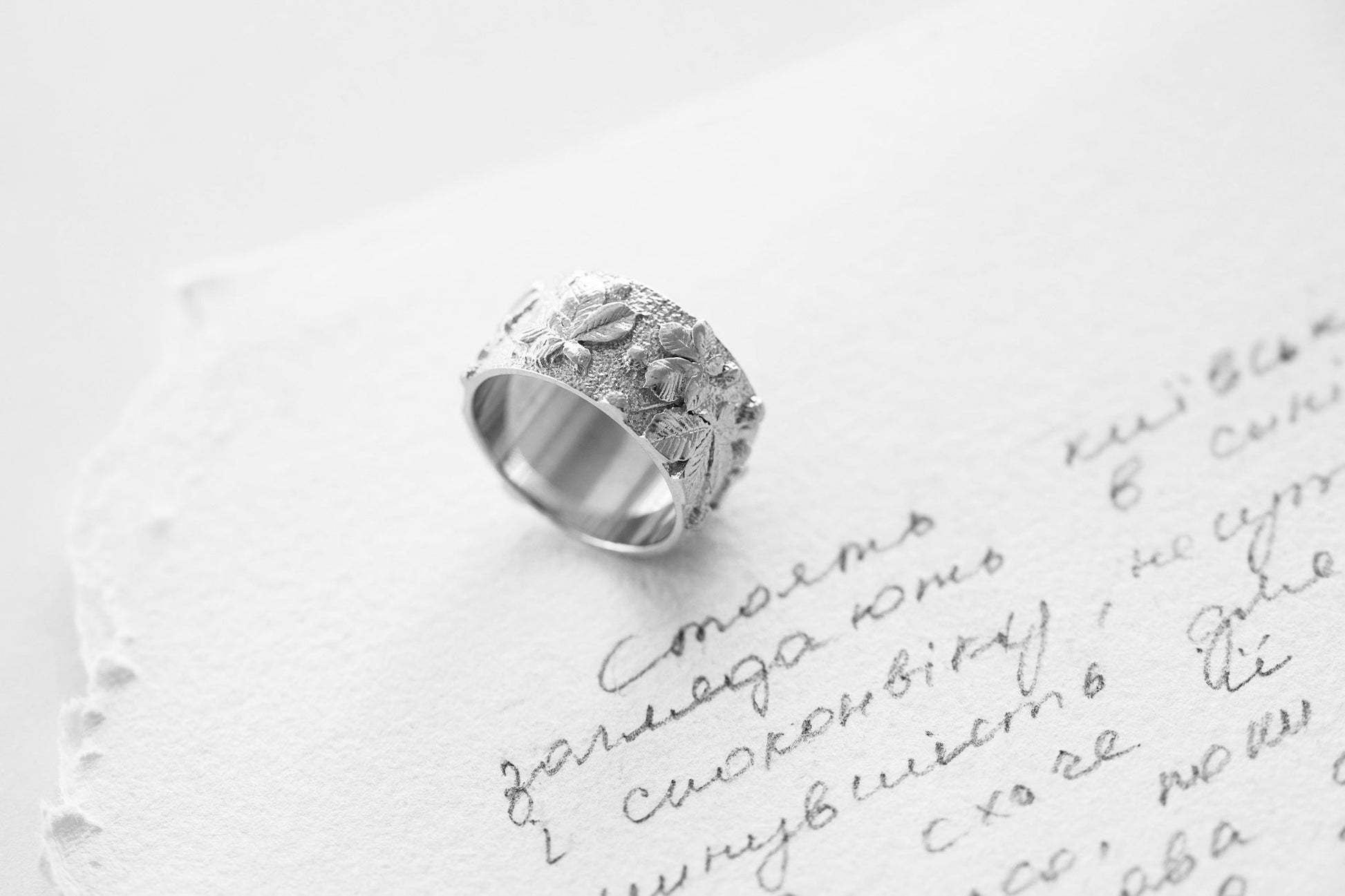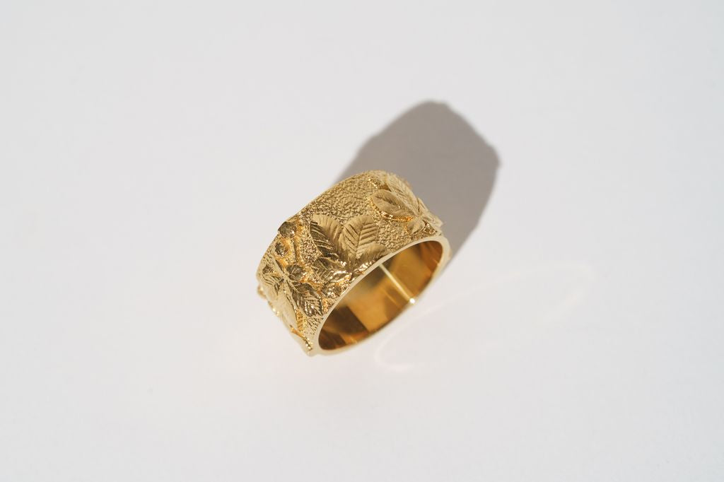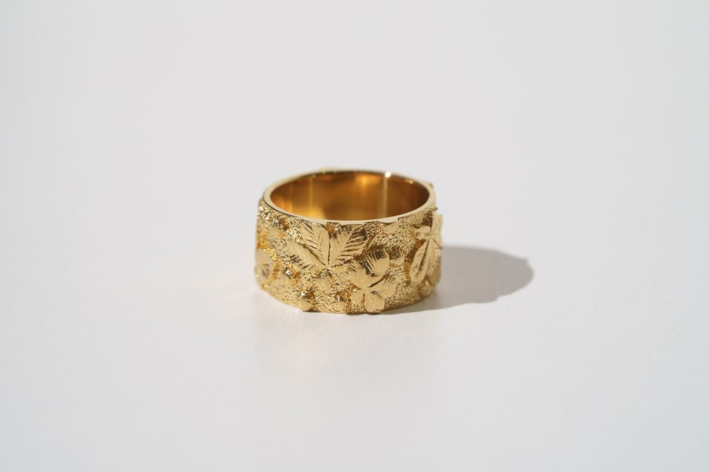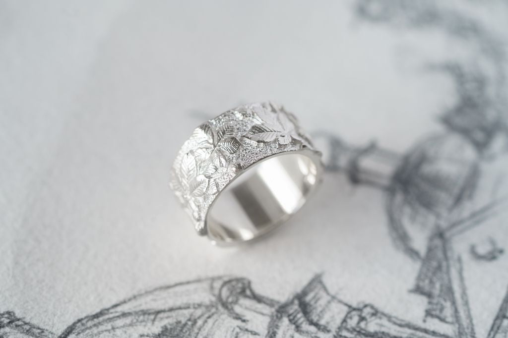 Light ring with chestnut leaf relief — an embodiment of Kyiv, filled with strength, the calm of old streets, and the rustling of trees that remember everything.