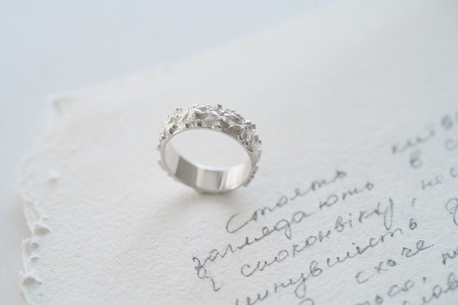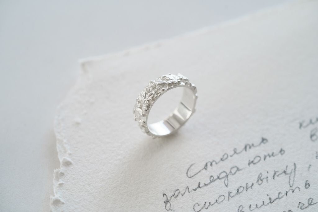 Light ring with chestnut leaf relief — a tribute to Kyiv, to its streets and memories scented with spring.