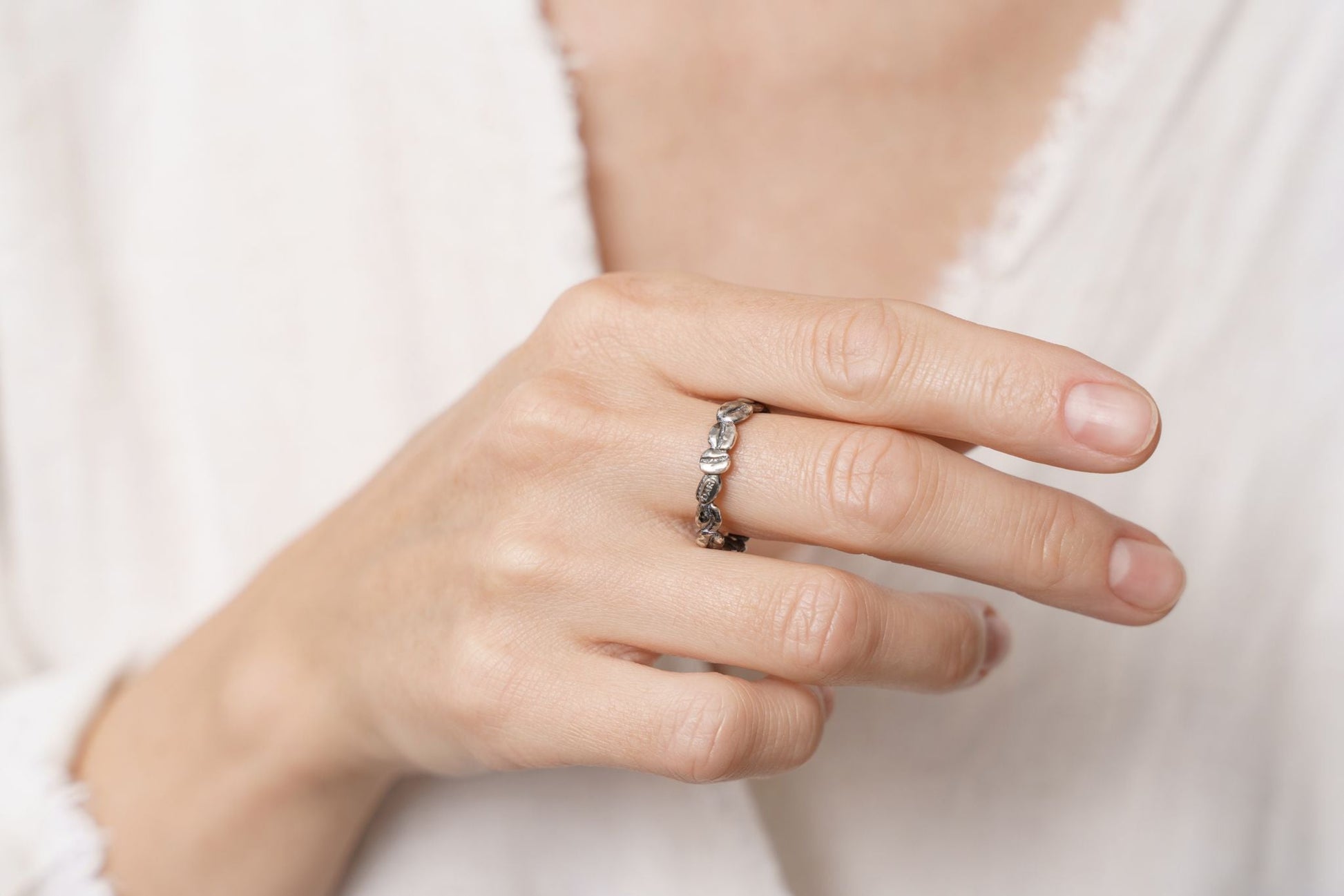 The “Coffee beans” ring (4 mm) in a light finish is a warm, atmospheric piece of jewelry inspired by the aroma of freshly brewed coffee.