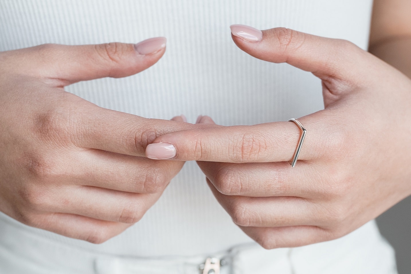 Important: A narrow ring should fit snugly over the knuckle to prevent slipping, while a wider ring should easily pass over the knuckle without pressing, as it may become difficult to remove in the morning due to swelling.