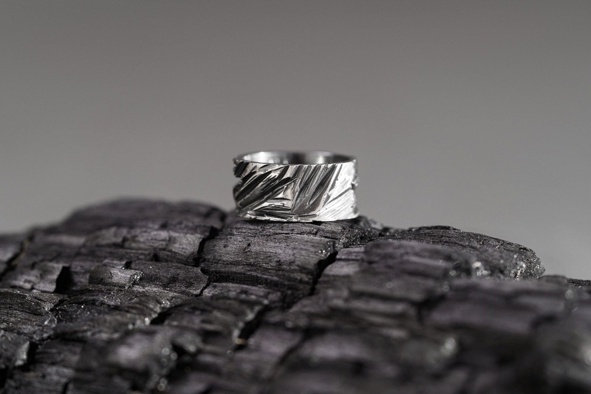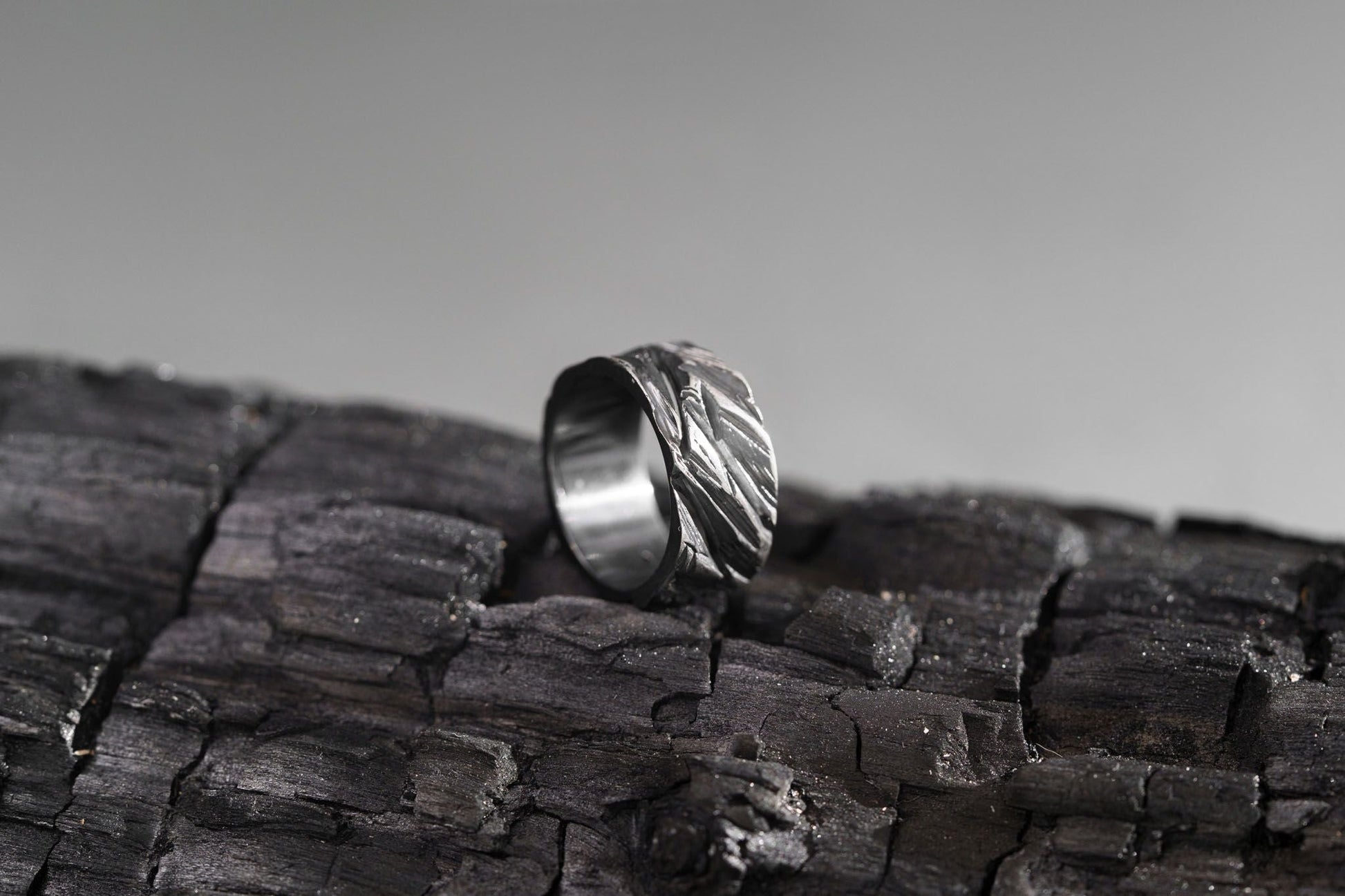 Introducing the "Crushed ice" blackened ring, a stylish and refined addition to any outfit. This ring with an elegant 10 mm design looks modern and sophisticated. This ring is perfect for any occasion and will surely highlight your style.