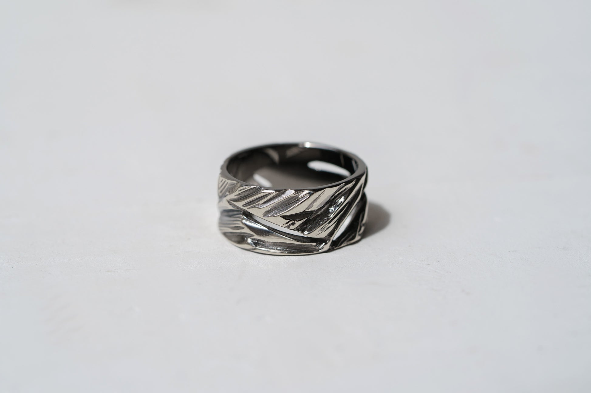 Crafted with precision, the blackened ring "Crushed ice" (8 mm) is both impressive and stylish. The unique design adds a touch of sophistication to any outfit, making it a must-have for any fashion-forward individual. Complete your look with this elegant and eye-catching ring.