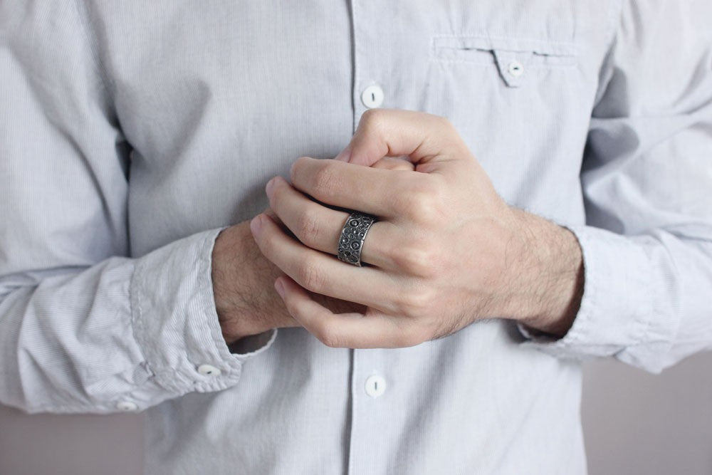 Important: A narrow ring should fit snugly over the knuckle to prevent slipping, while a wider ring should easily pass over the knuckle without pressing, as it may become difficult to remove in the morning due to swelling.