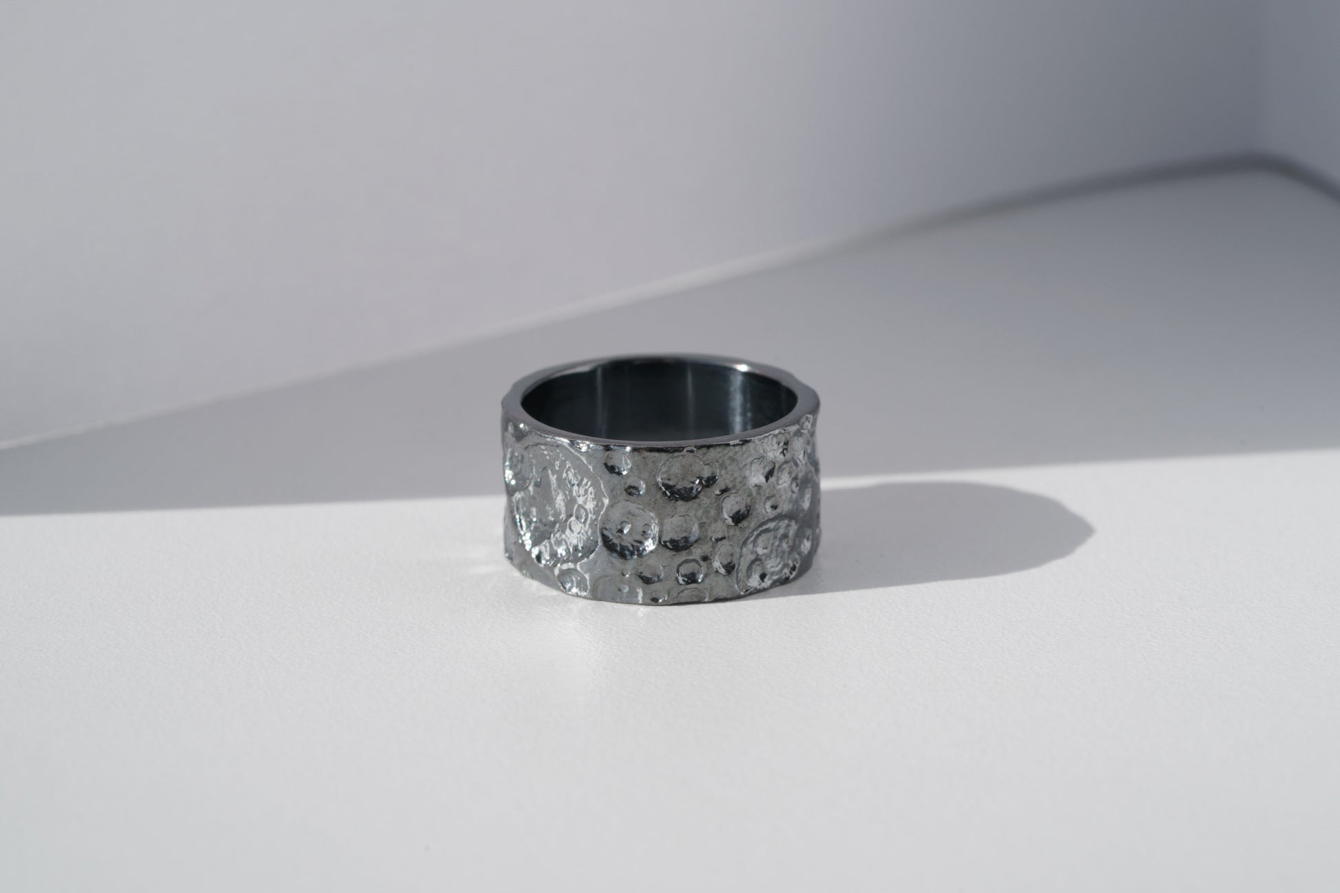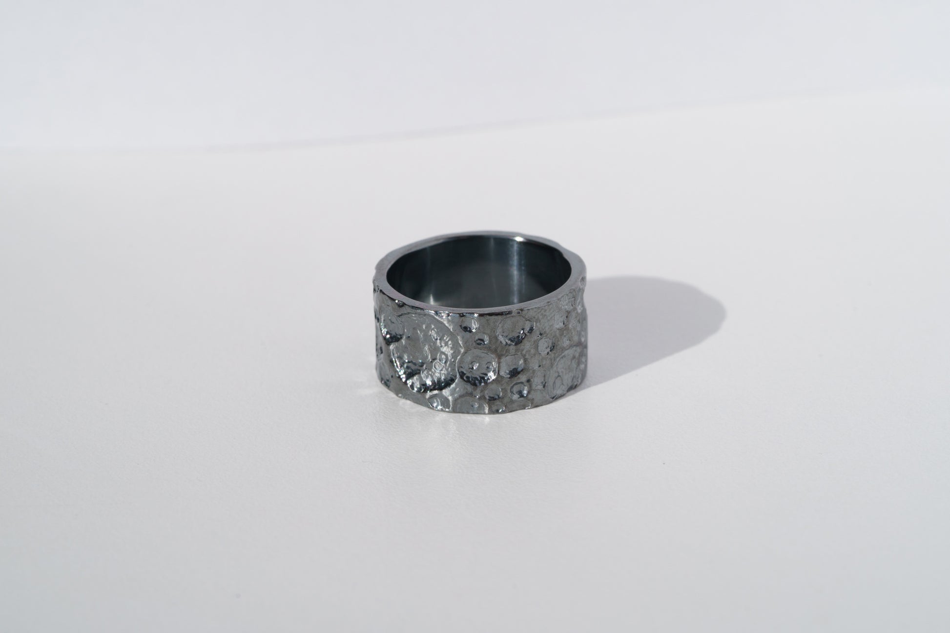 This "Dark moon" ring features a 10 mm width, making it a stunning and attractive accessory. Crafted with precision, it's perfect for those who appreciate unique and expertly designed pieces.