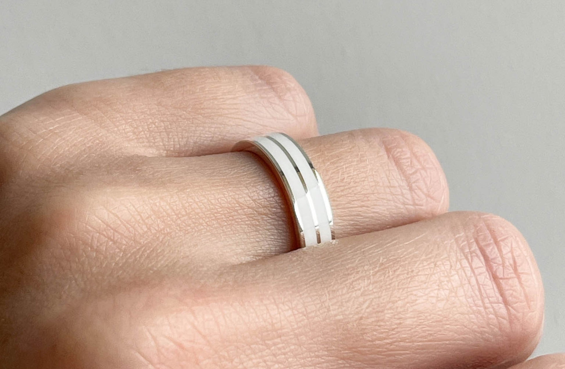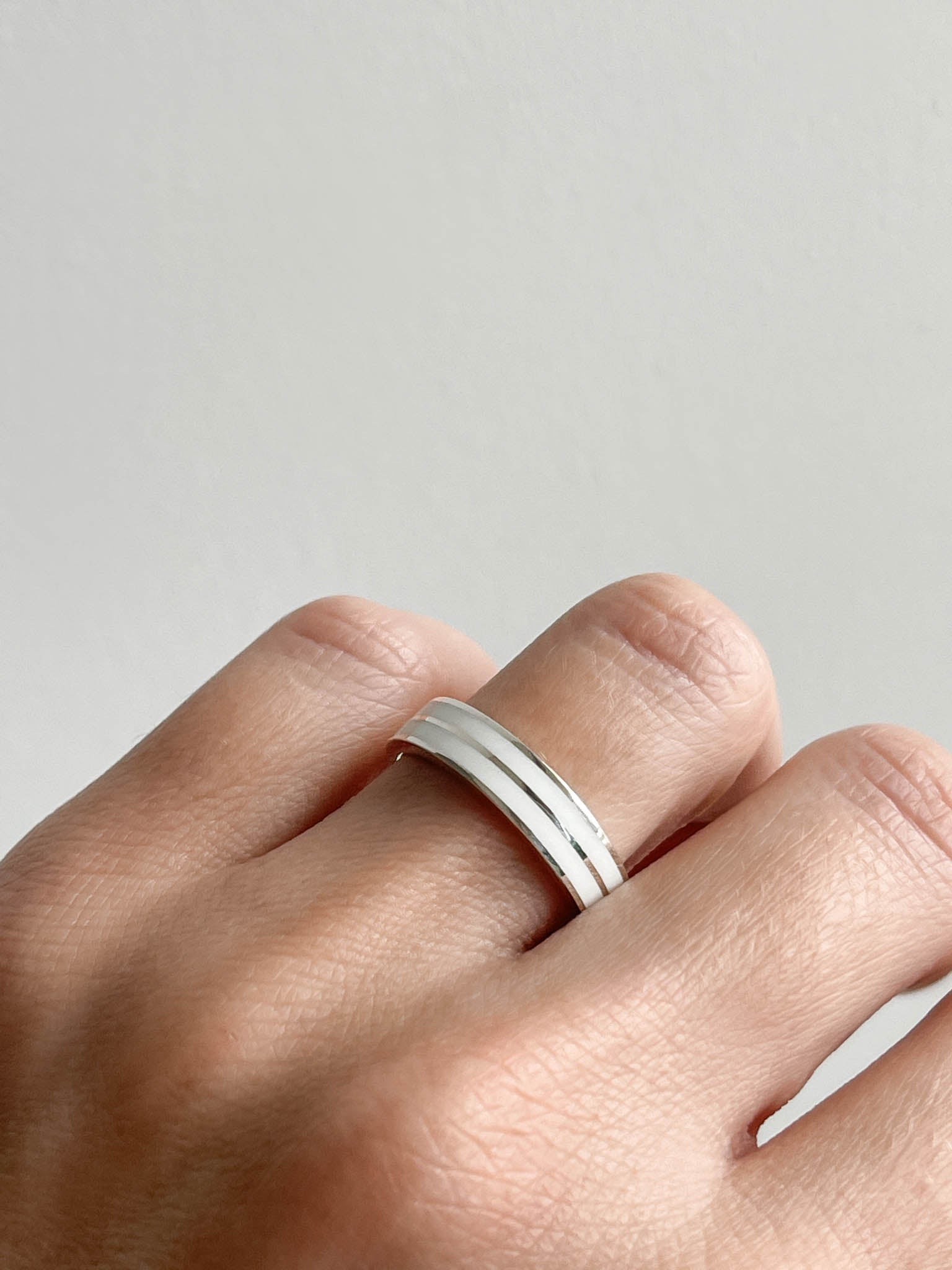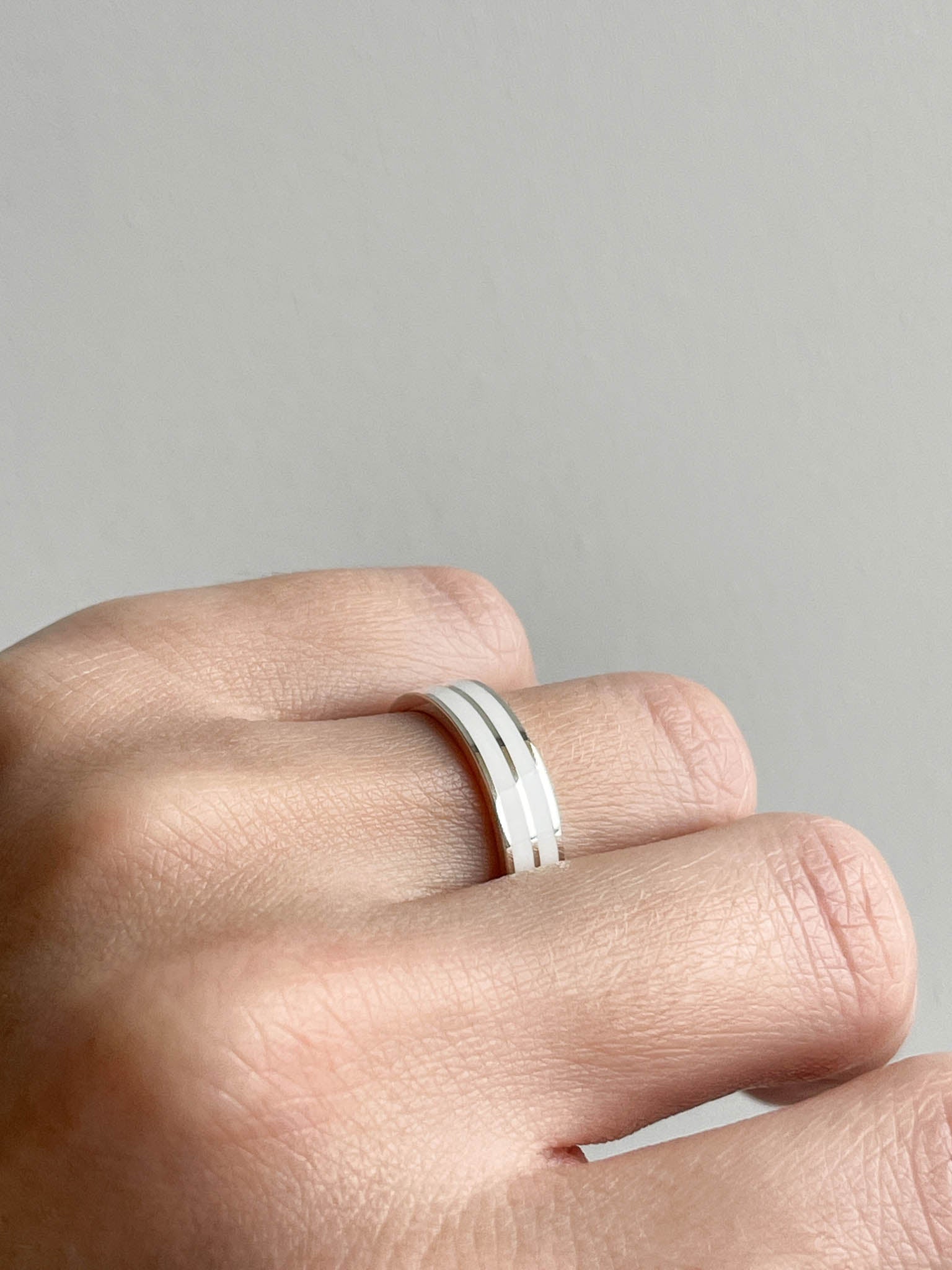Ring "Double Stripe" (5 mm) with enamel — an elegant piece with a refined design. Two parallel enamel stripes create a bold accent, giving the ring a modern look. An ideal choice for those who appreciate stylish and harmonious accessories.