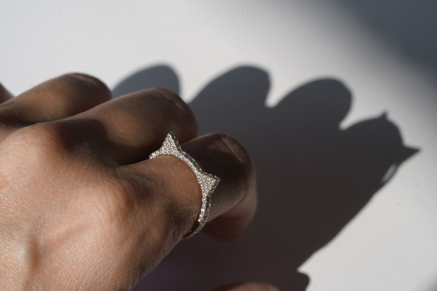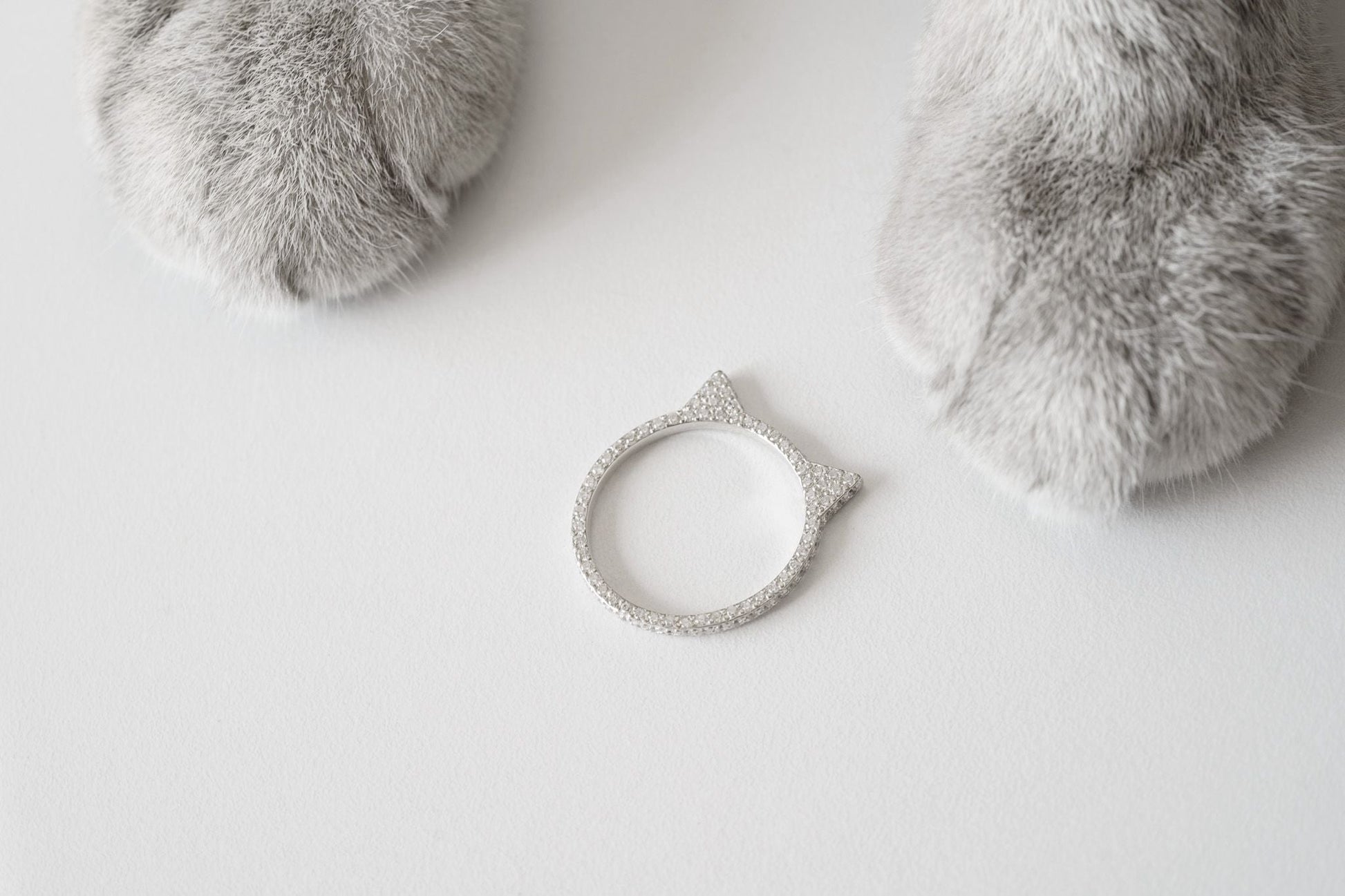 Ring "Ears" (Model 2) with gemstones — an elegant piece with a playful design. The ear-shaped form is enhanced by sparkling stones, adding refinement and unique charm to the ring. An ideal choice for those who love stylish accessories with delicate details.
