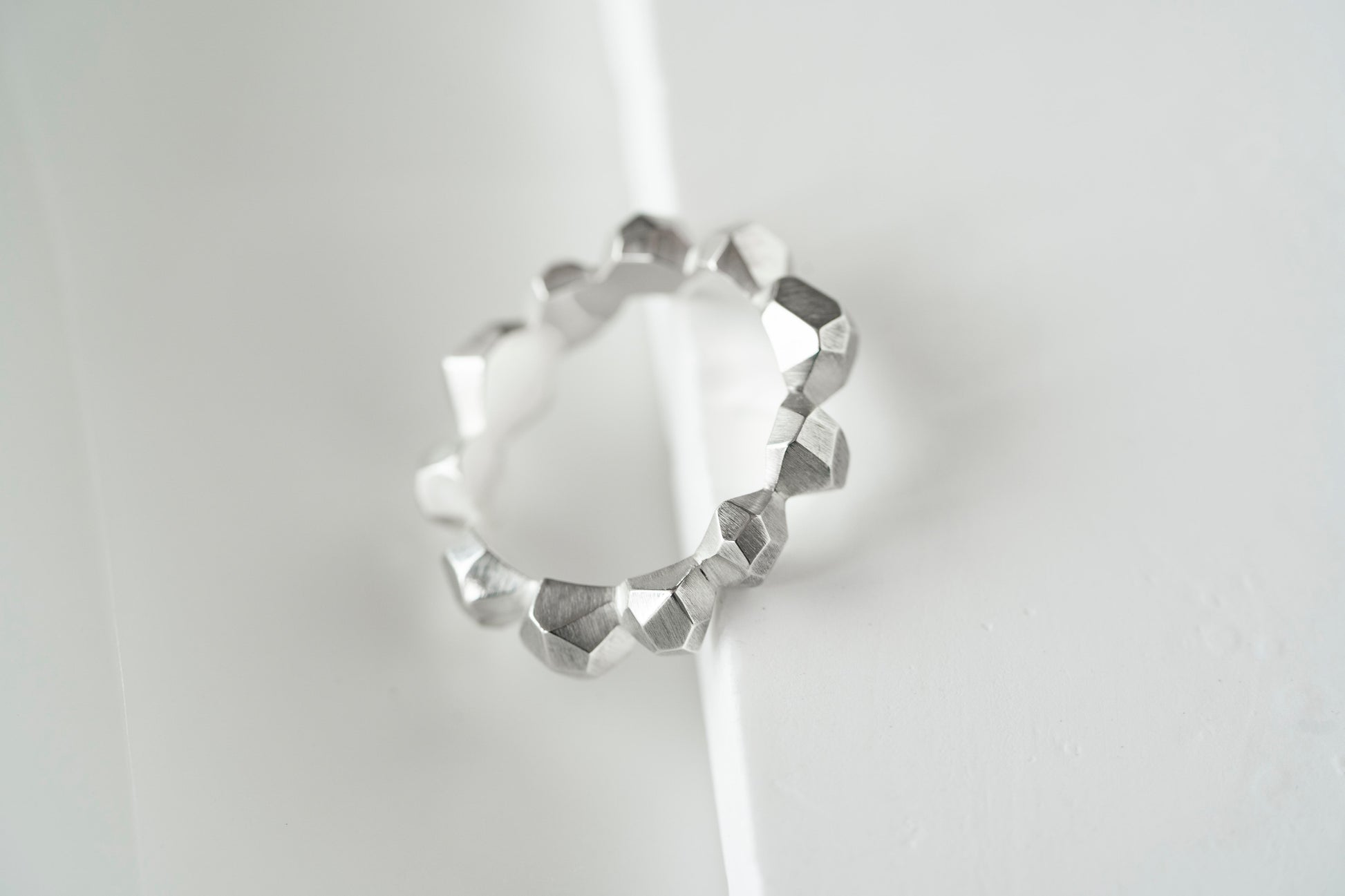 Expertly crafted from high-quality materials, a "Faceted balls" ring boasts of a flawless finish and alluring design for an elegant touch. Perfect for any occasion, this ring is both attractive and timeless. Elevate your style with this stunning piece.
