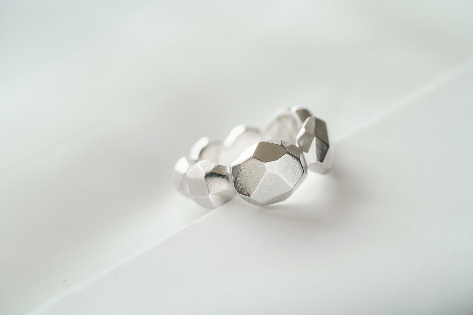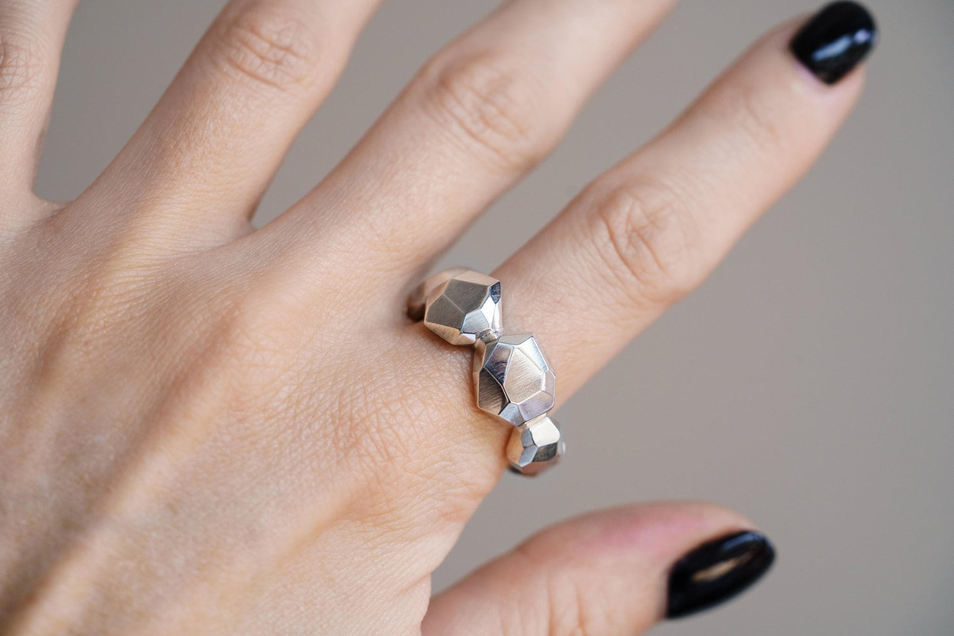 This "Faceted balls" massive ring combines an attractive design with unique and amazing features. Experience a one-of-a-kind piece that will surely stand out. Crafted with precision and quality, this ring is a must-have for any jewelry collection. Elevate your style with this stunning ring today.