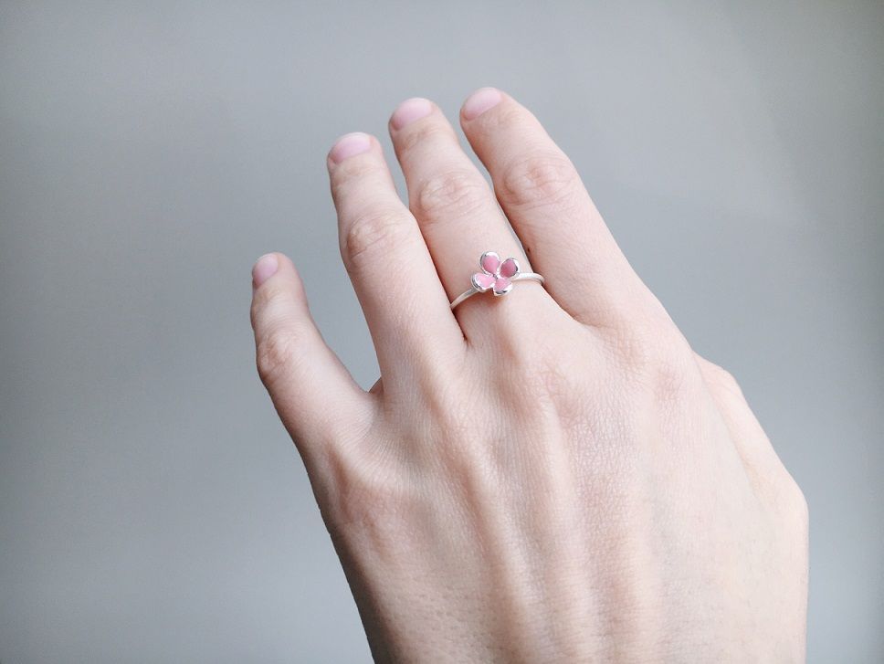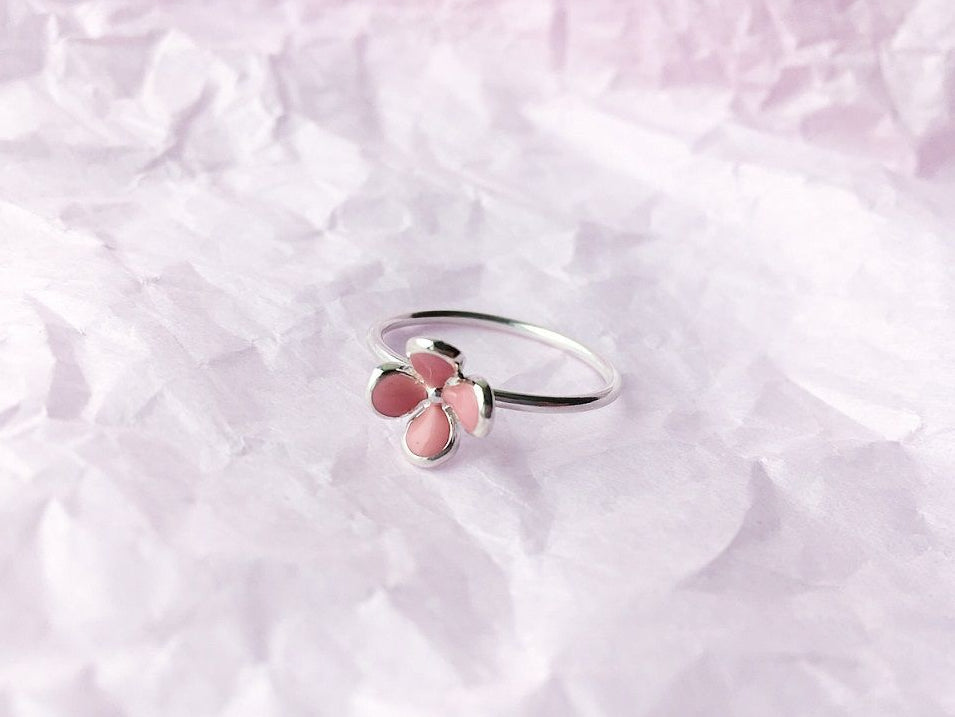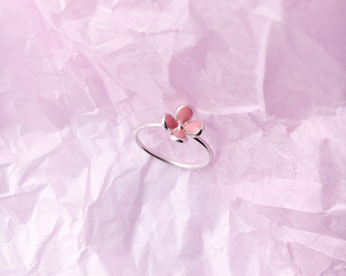 "Flower" Ring with Enamel  — a delicate and refined piece that captures the charm of floral motifs. The pink enamel adds a romantic touch, making the ring a subtle yet graceful accent to your look. A perfect choice for those who appreciate elegance with a hint of tenderness.