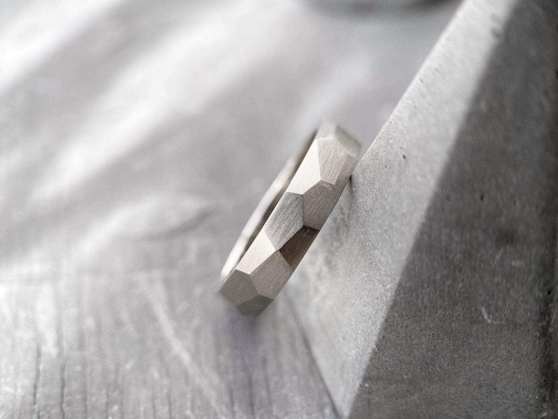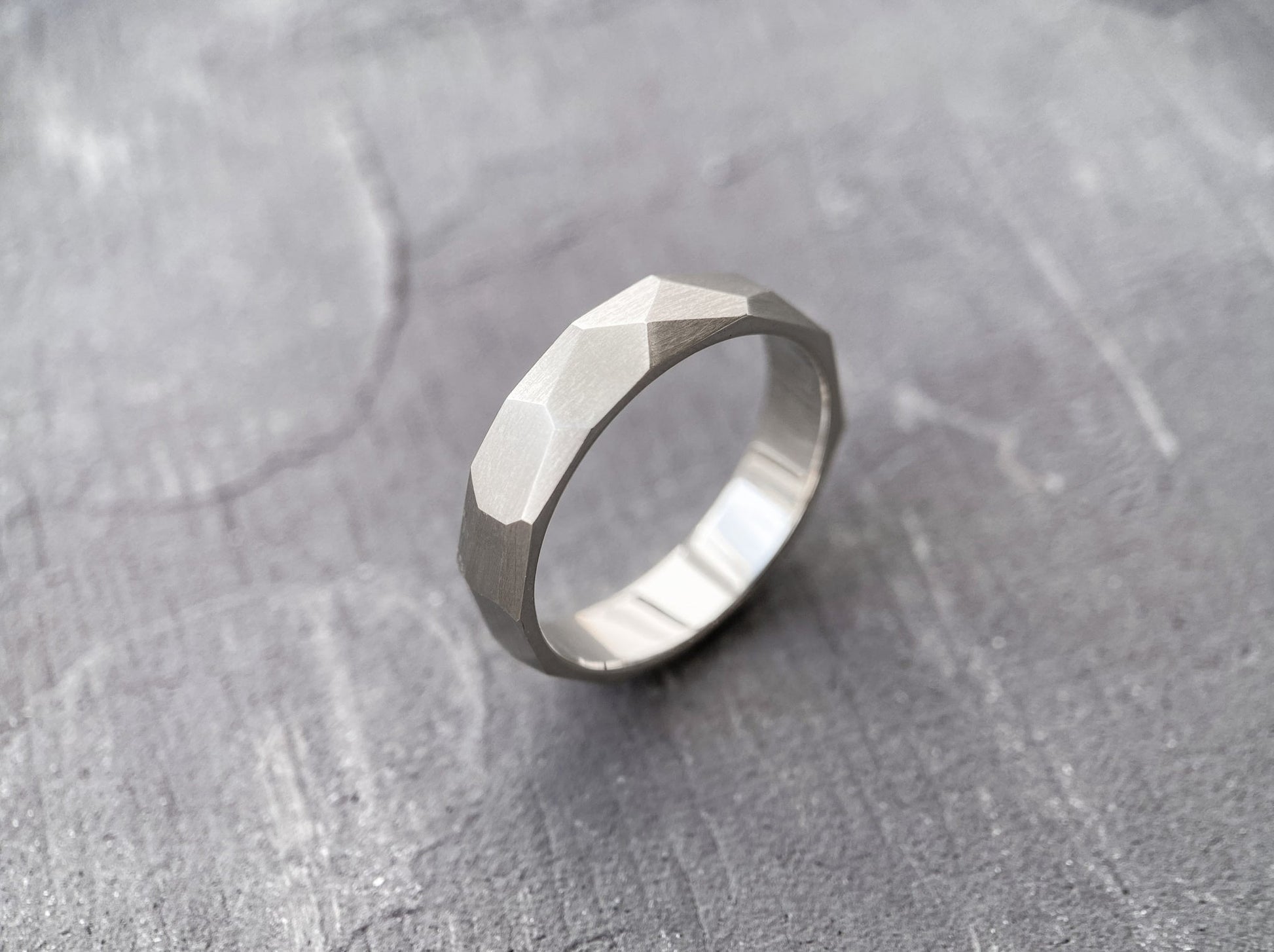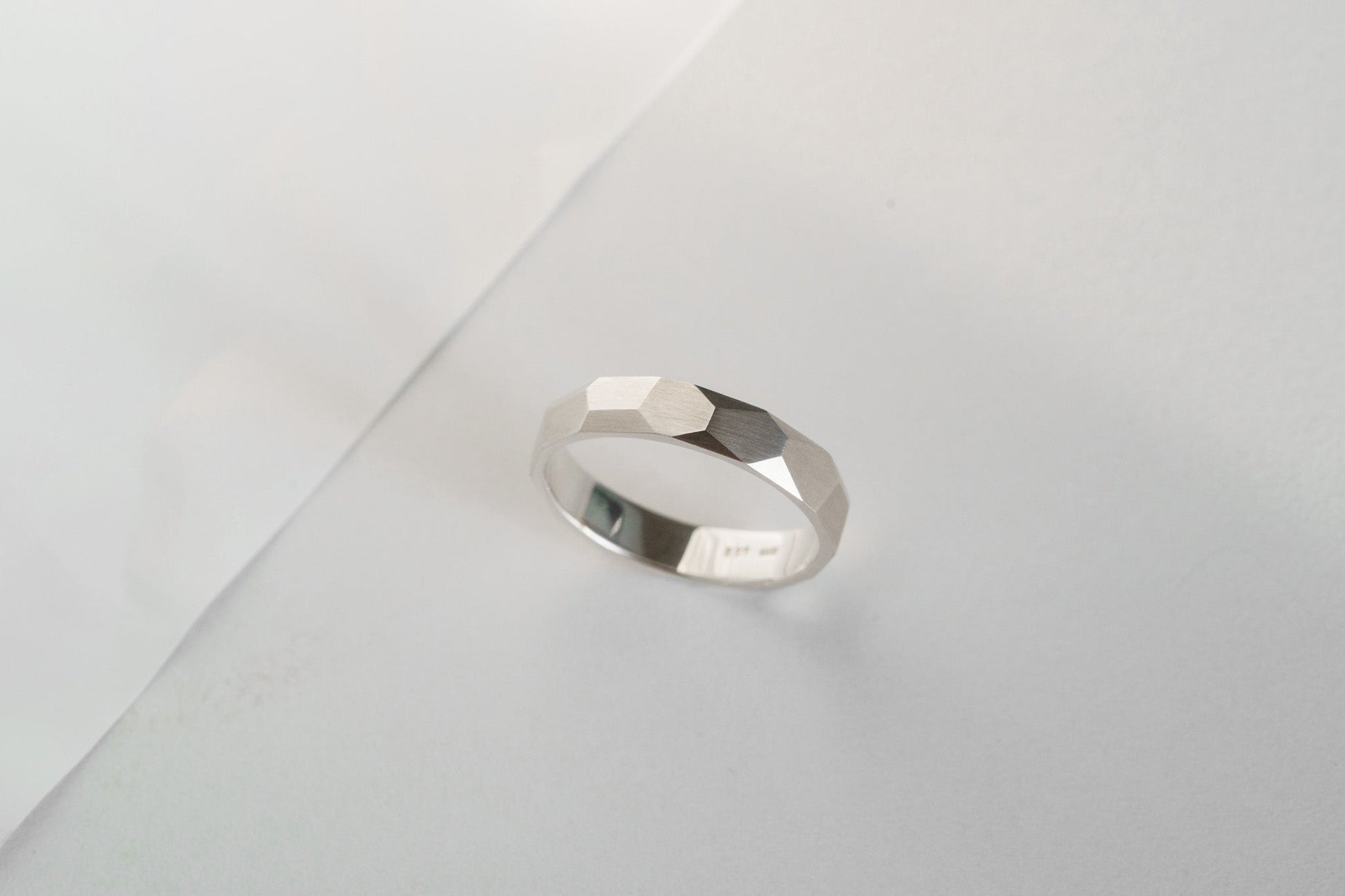 This stunning ring features large facets that add a refined and luxurious touch to its attractive design. This is a perfect statement piece 4 mm wide for any occasion. Elevate your style with this elegant and sophisticated ring.