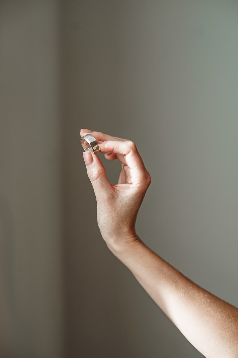 In the morning, there may still be some overnight swelling, and by the evening, the fingers are already swollen. The best time to try on a ring is in the middle of the day.