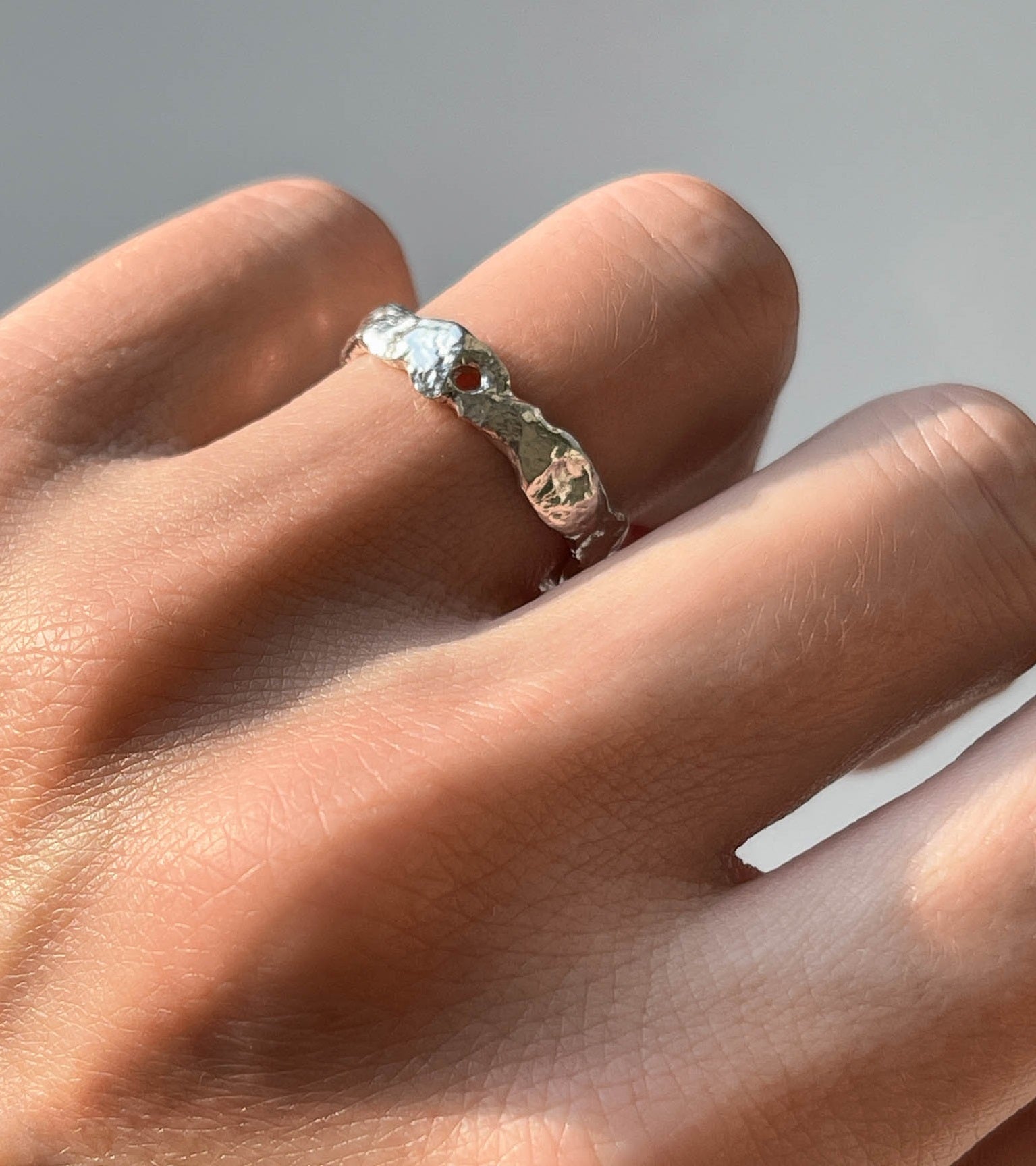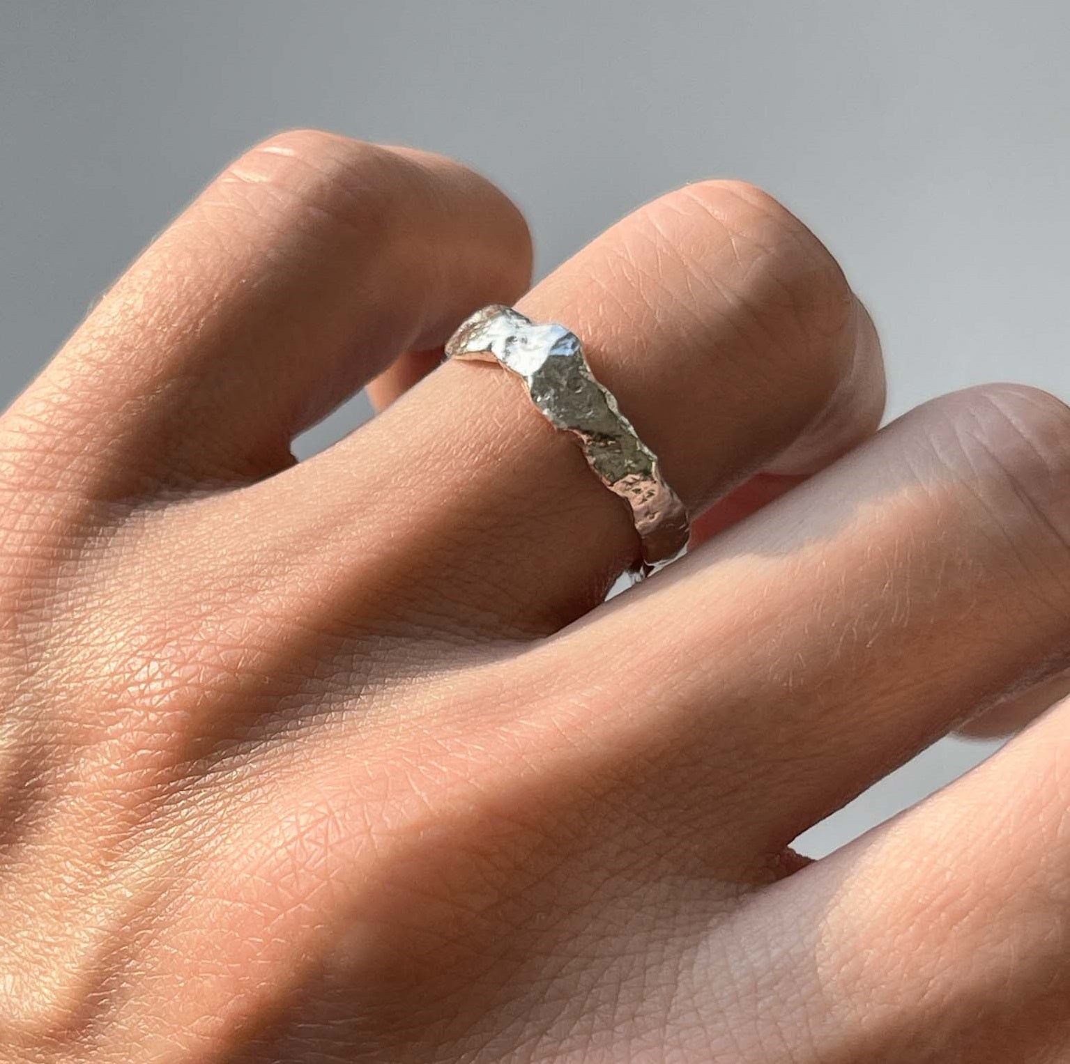 This "Light asteroid" ring, crafted by an expert with a width of 3 mm, combines a striking design with harmonious aesthetics. Made with precision and expertise, this ring embodies both style and impact.
