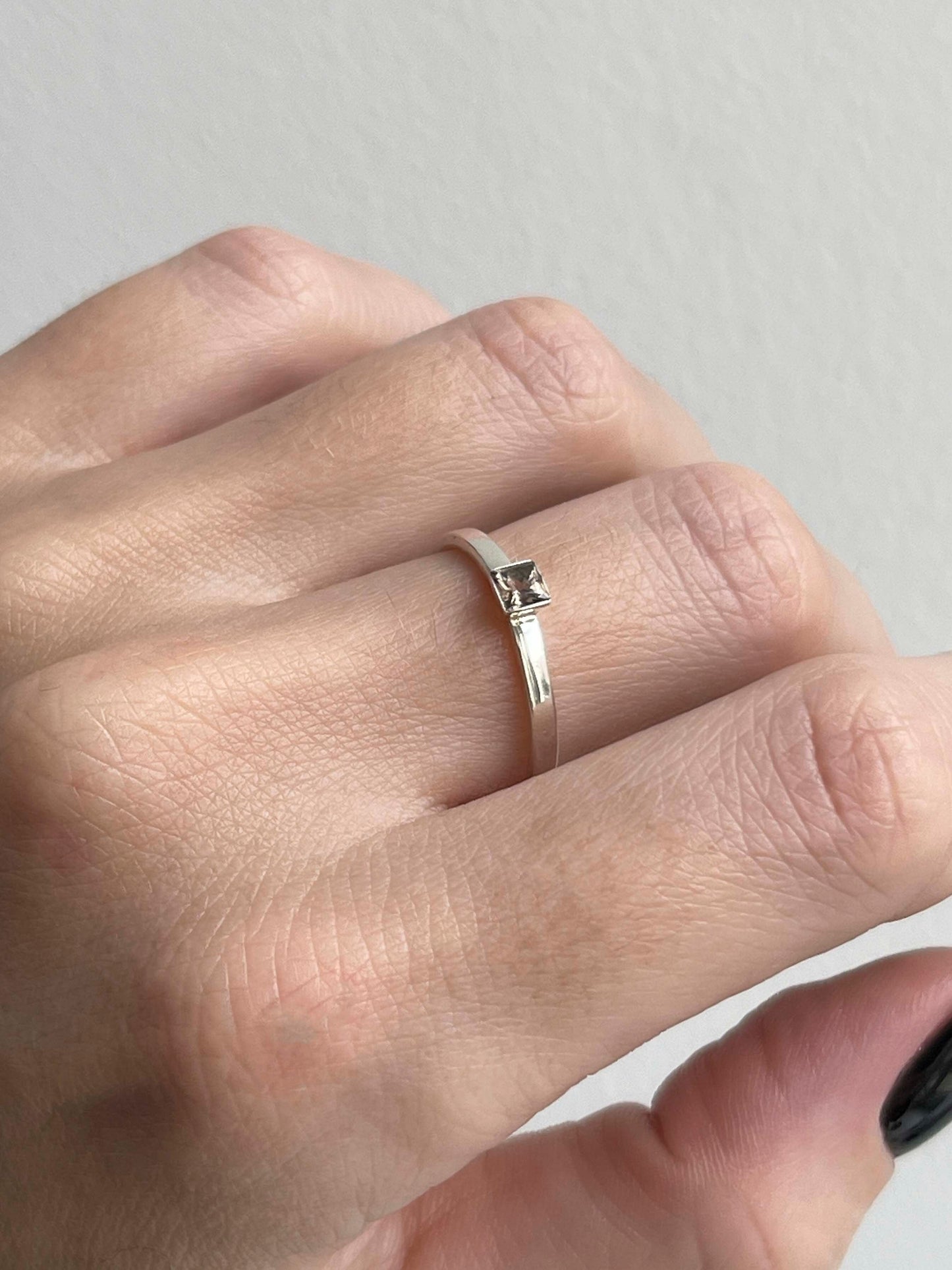Ring "Principle" (gemstone 4*4 mm) — a refined and elegant piece with a bold accent. The geometric stone enhances the minimalist design, adding a touch of modern charm. A perfect choice for those who appreciate style and confidence in details.